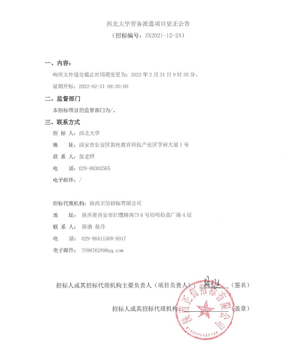 关于必赢3003no1线路检测中心劳务派遣项目更正公告