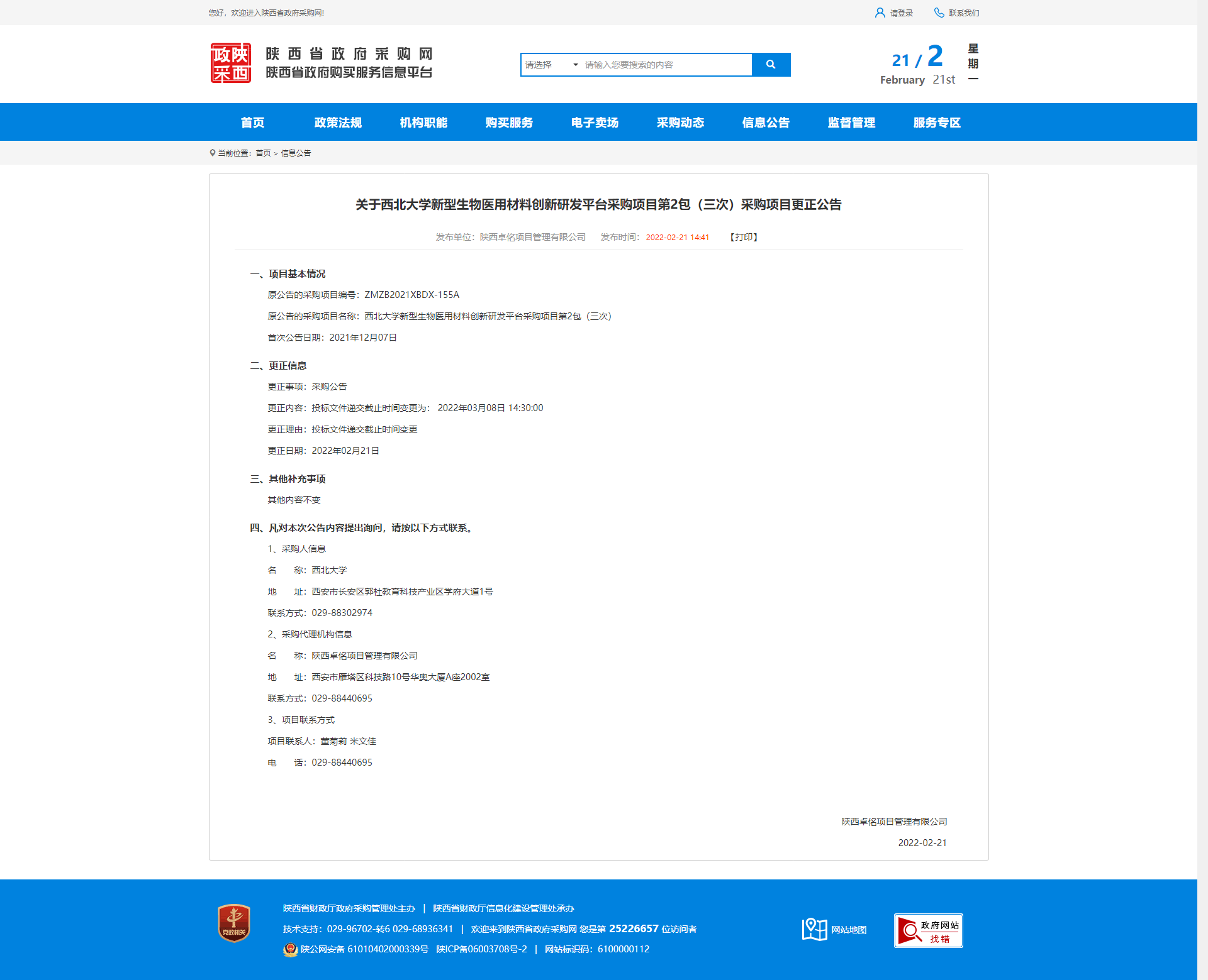 关于必赢3003no1线路检测中心新型生物医用材料创新研发平台采购项目第2包(三次)采购项目更正公告 作者: 编辑:薛利娟 时间:2022-02-21 原公告链接:http://www.ccgp-shaanxi.gov.cn/notice/noticeDetail.do?noticeguid=8a85be317ee7907d017f1a9fc1d146e6
