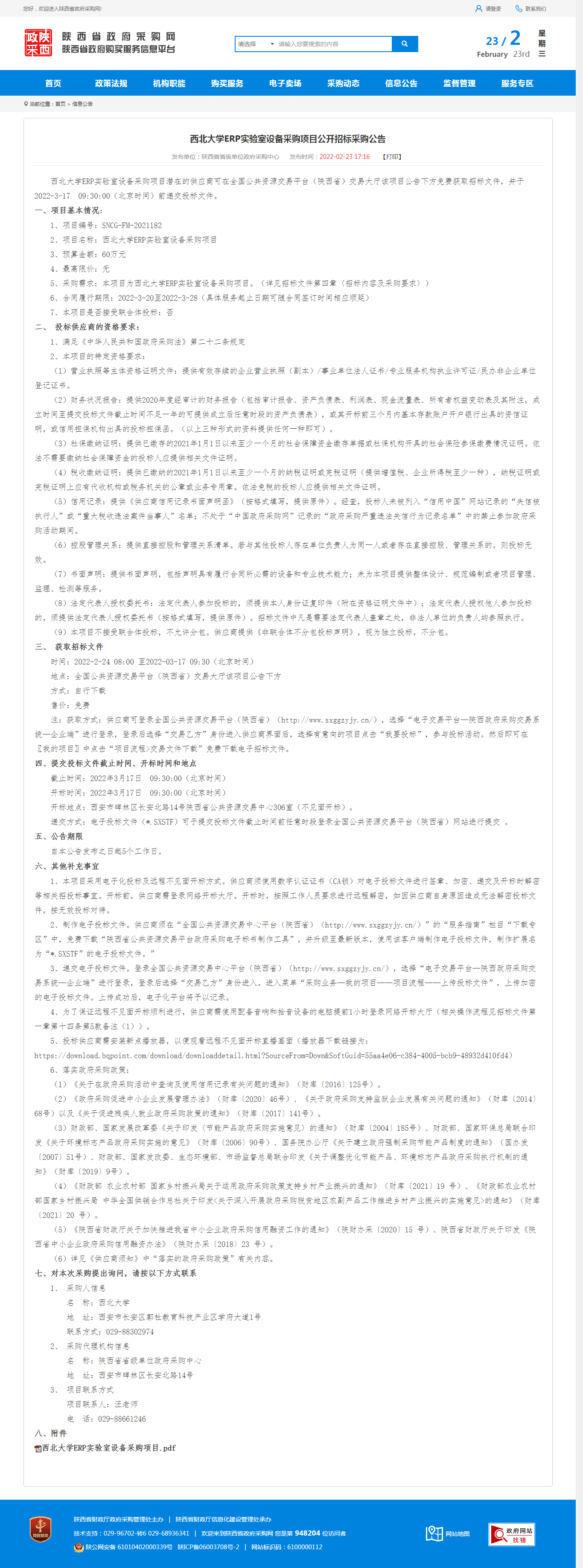 必赢3003no1线路检测中心ERP实验室设备采购项目公开招标采购公告 作者: 编辑:薛利娟 时间:2022-02-23 原公告链接:http://www.ccgp-shaanxi.gov.cn/notice/noticeDetail.do?noticeguid=8a85be387e22c8ad017f25db42450373