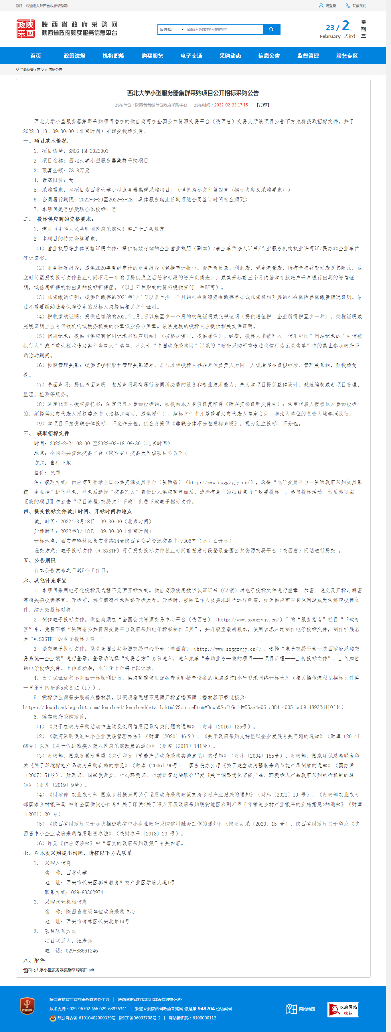 必赢3003no1线路检测中心小型服务器集群采购项目公开招标采购公告 作者: 编辑:薛利娟 时间:2022-02-23 原公告链接:http://www.ccgp-shaanxi.gov.cn/notice/noticeDetail.do?noticeguid=8a85be387e22c8ad017f25dab58b0372
