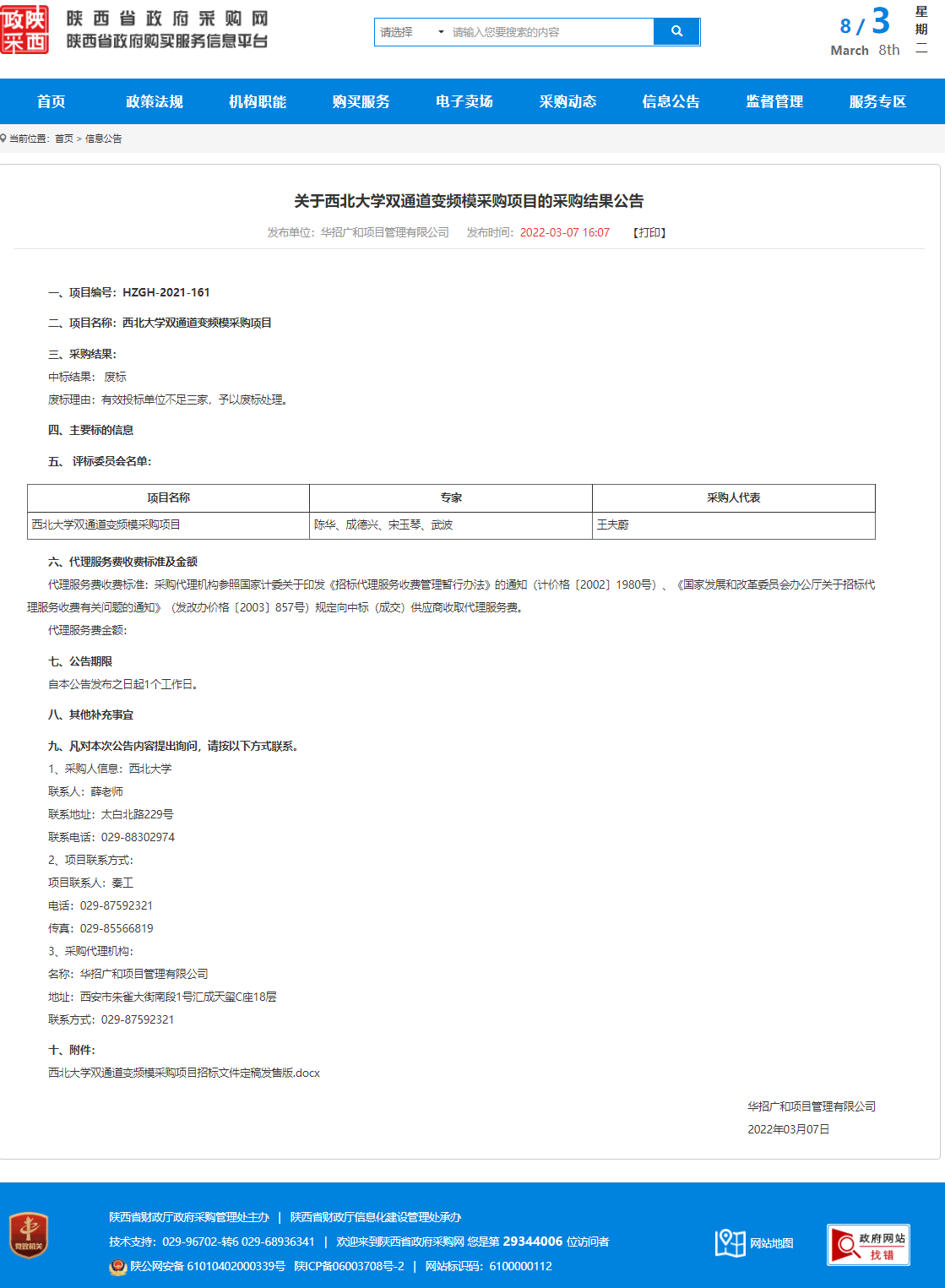关于必赢3003no1线路检测中心双通道变频模采购项目的采购结果公告
