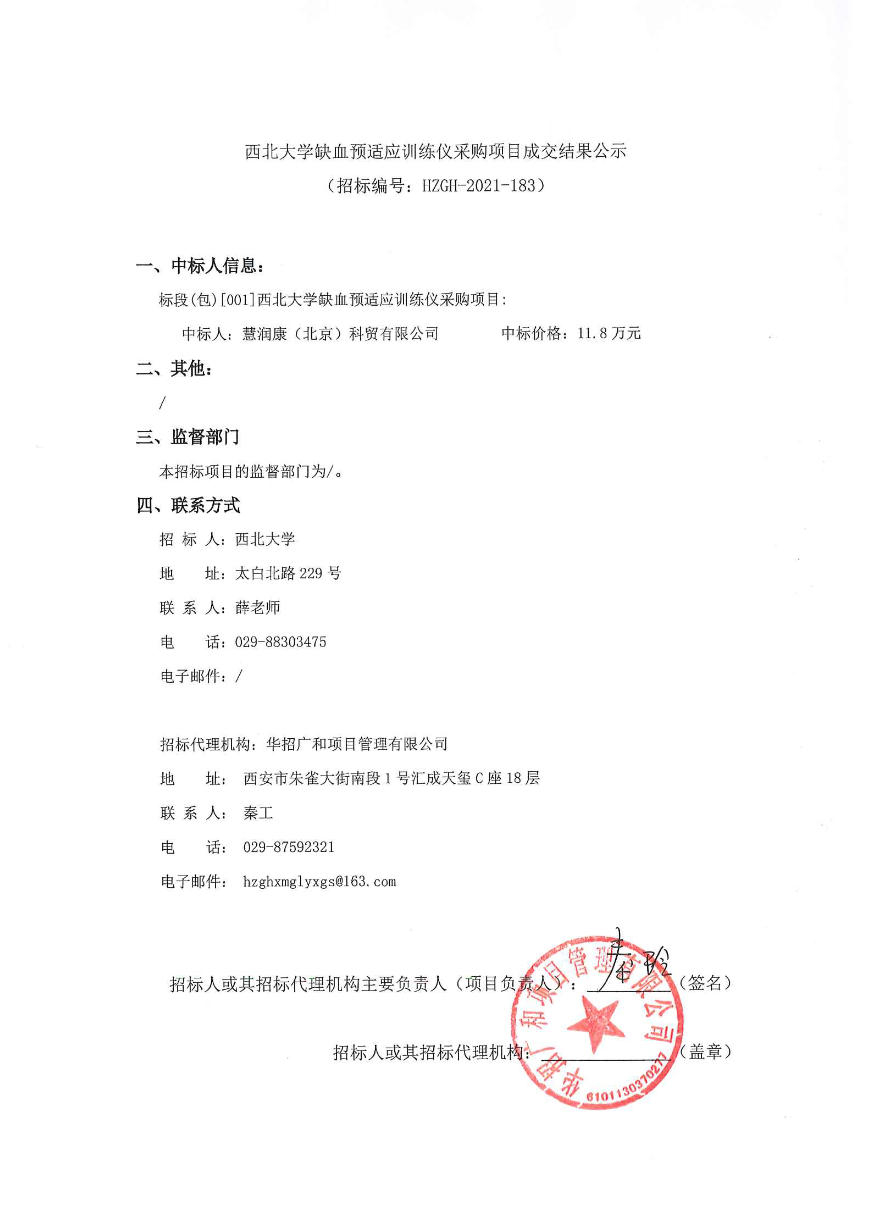 必赢3003no1线路检测中心缺血预适应训练仪采购项目成交结果公示