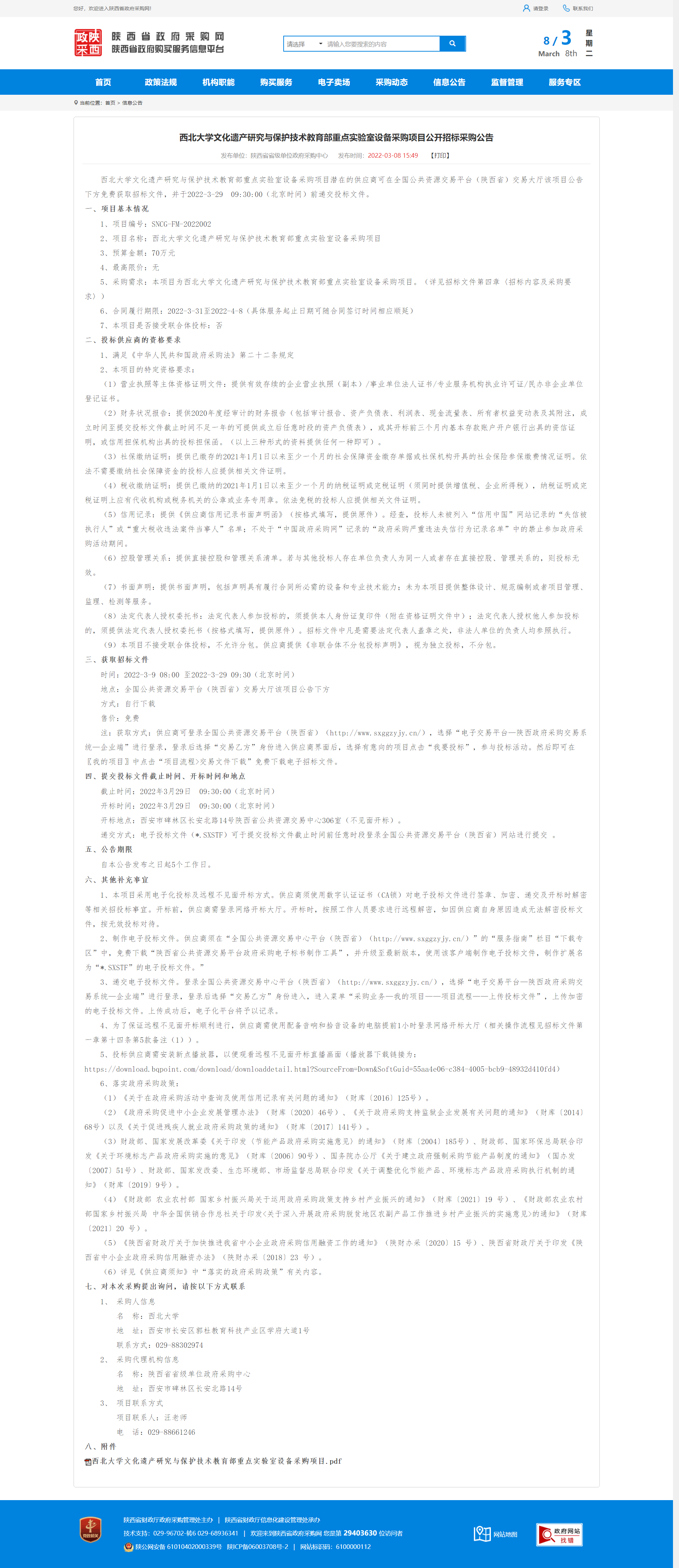 必赢3003no1线路检测中心文化遗产研究与保护技术教育部重点实验室设备采购项目公开招标采购公告 作者: 编辑:薛利娟 时间:2022-03-08 原公告链接:http://www.ccgp-shaanxi.gov.cn/notice/noticeDetail.do?noticeguid=8a85be387e22c8ad017f687dcc81045b