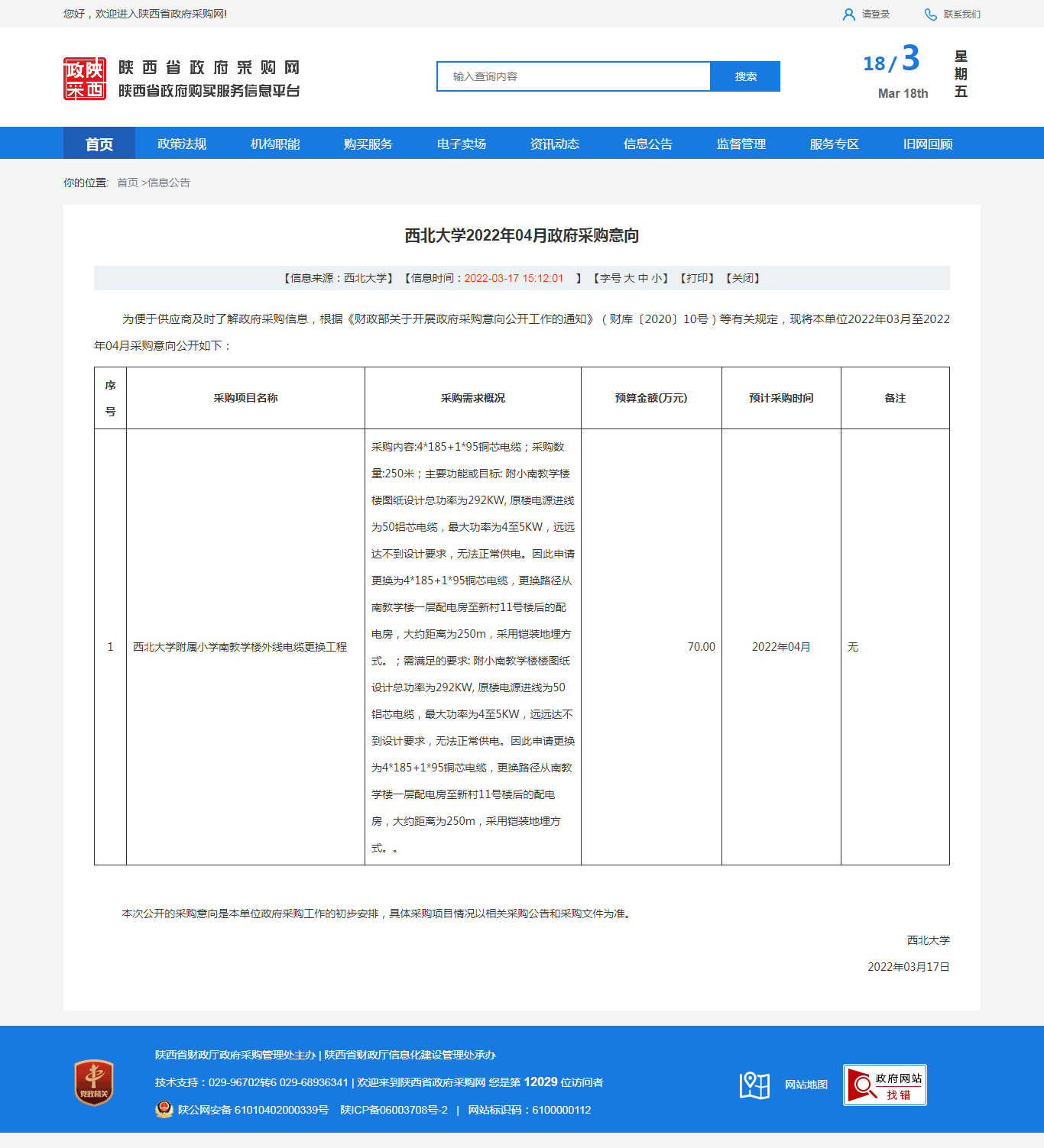 必赢3003no1线路检测中心2022年04月政府采购意向 作者: 编辑: 时间:2022-03-18 原公告链接:http://www.ccgp-shaanxi.gov.cn/freecms/site/shaanxi/ggxx/info/2022/8a69c4007f95d4d3017f96b678eb1ec0.html?noticeType=59¬iceId=a2b3ba2a-a5c1-11ec-a943-08c0eb20c486