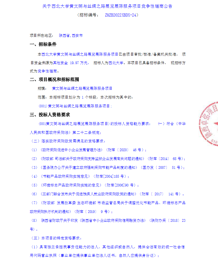 关于必赢3003no1线路检测中心黄文弼与丝绸之路展览展陈服务项目竞争性磋商公告
