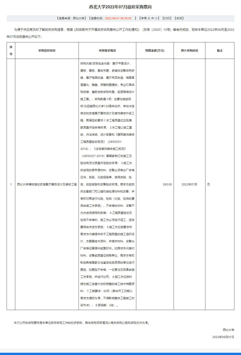 必赢3003no1线路检测中心2022年07月政府采购意向