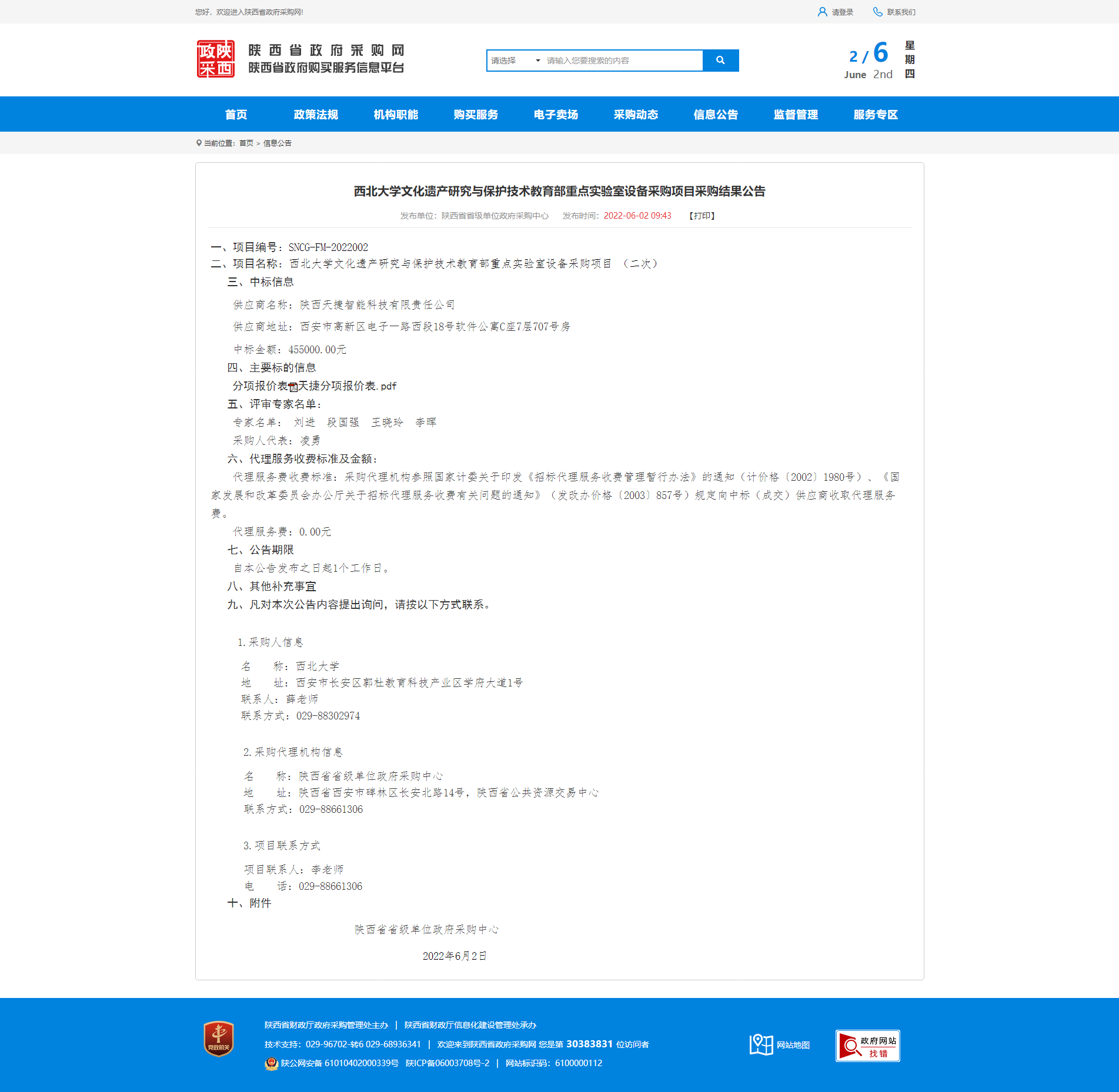 必赢3003no1线路检测中心文化遗产研究与保护技术教育部重点实验室设备采购项目采购结果公告