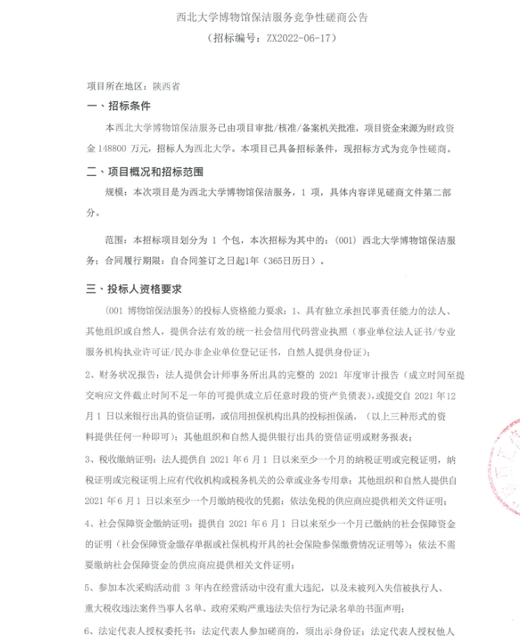 必赢3003no1线路检测中心博物馆保洁服务竞争性磋商公告