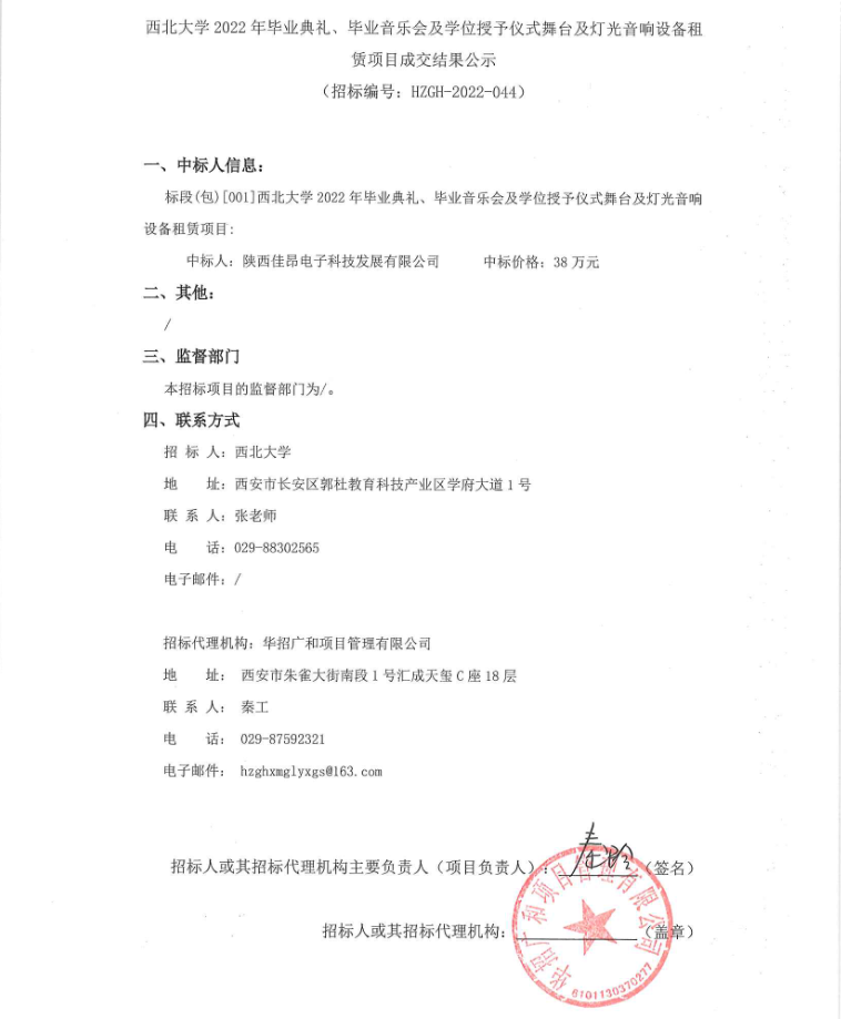 关于必赢3003no1线路检测中心2022年毕业典礼、毕业音乐会及学位授予仪式舞台及灯光音响设备租赁项目成交结果公示