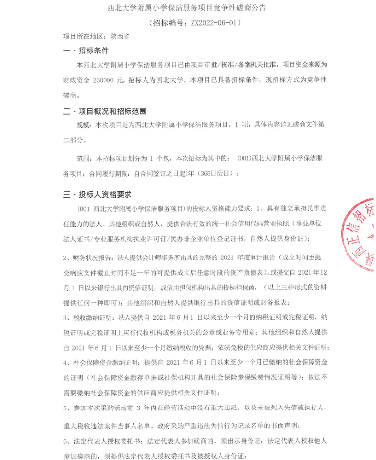 必赢3003no1线路检测中心附属小学保洁服务项目竞争性磋商公告