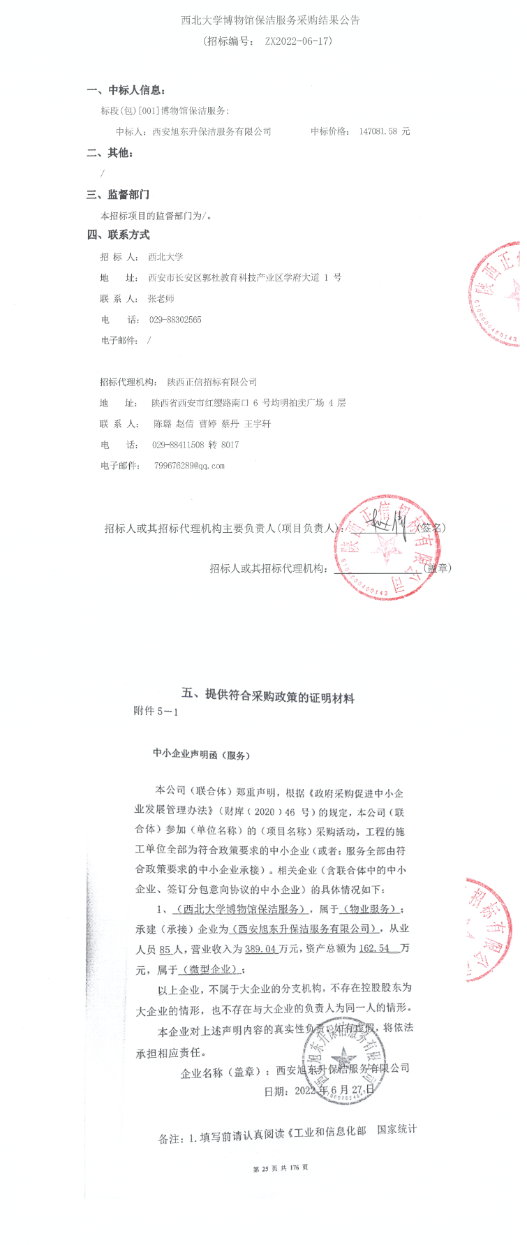 关于必赢3003no1线路检测中心博物馆保洁服务采购结果公告