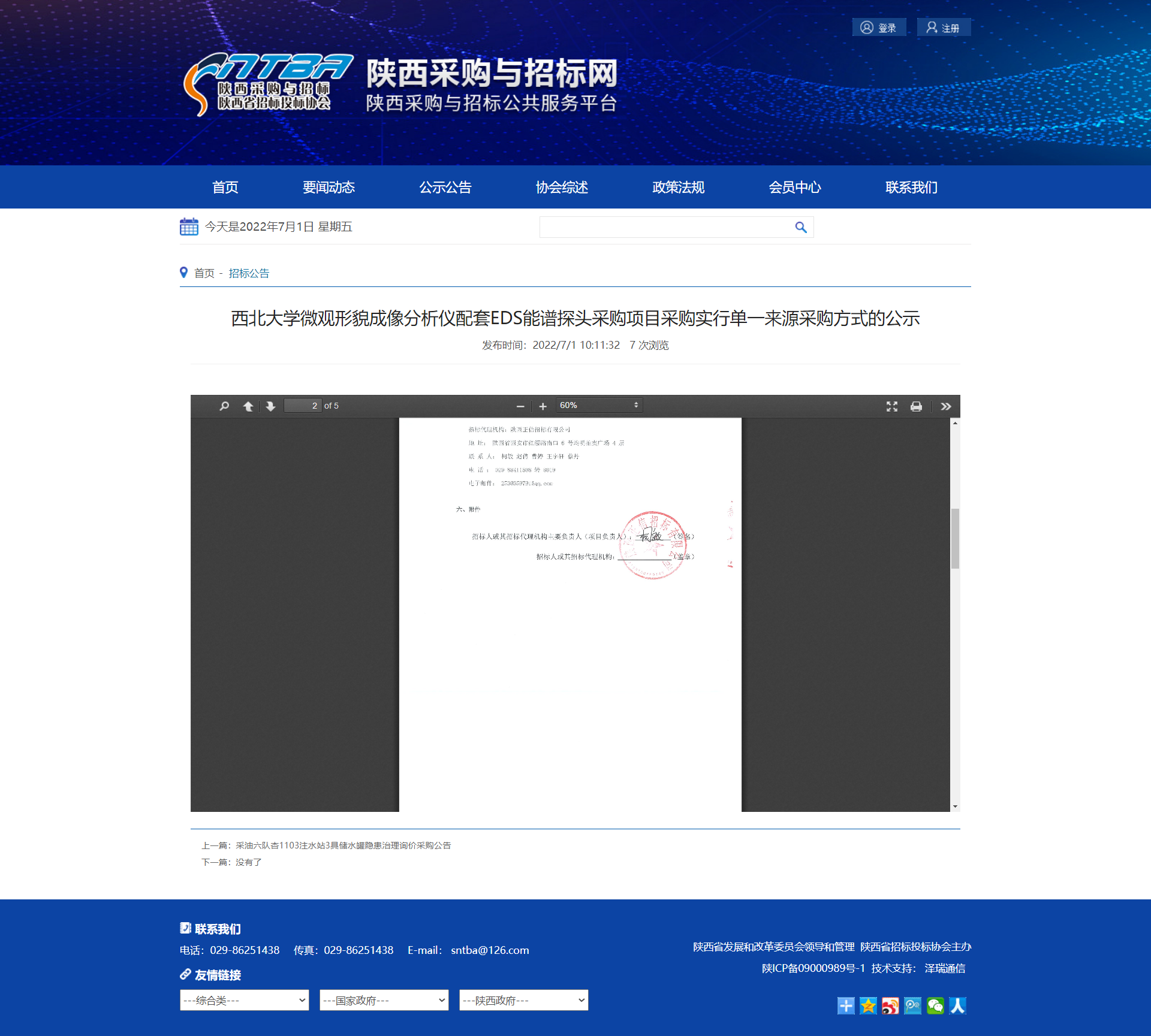 必赢3003no1线路检测中心微观形貌成像分析仪配套EDS能谱探头采购项目采购实行单一来源采购方式的公示 作者: 编辑:采购与招标办公室 时间:2022-07-01 原公告链接:http://www.sntba.com/website/gg_show.aspx?id=216192