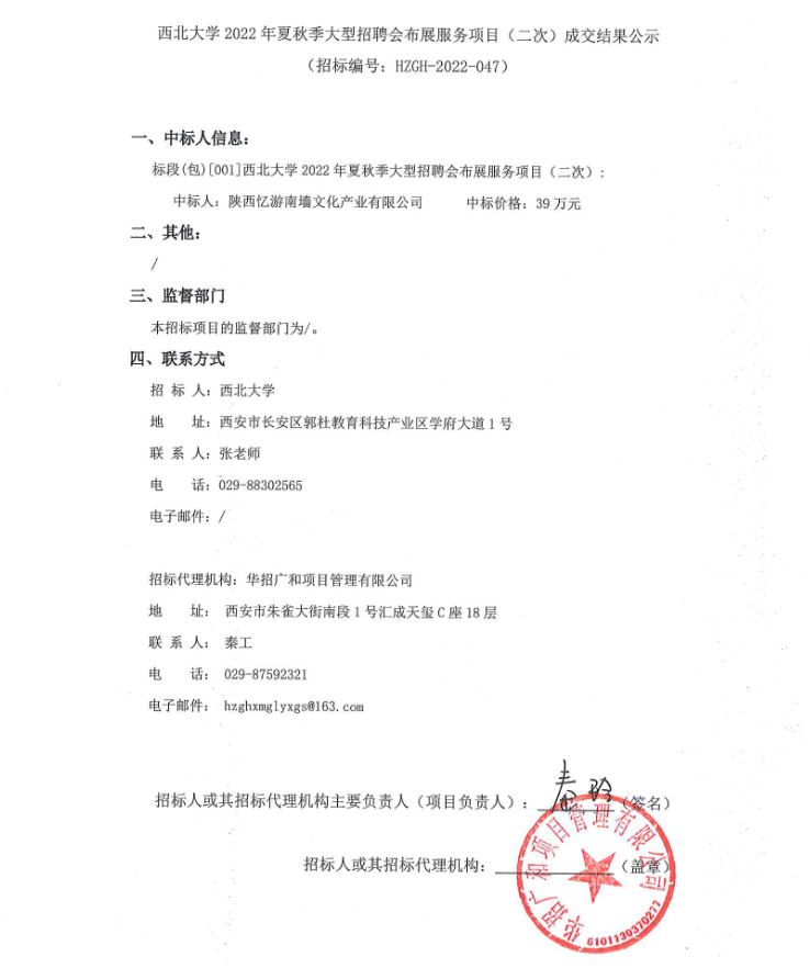 关于必赢3003no1线路检测中心2022年夏秋季大型招聘会布展服务项目(二次)成交结果公示