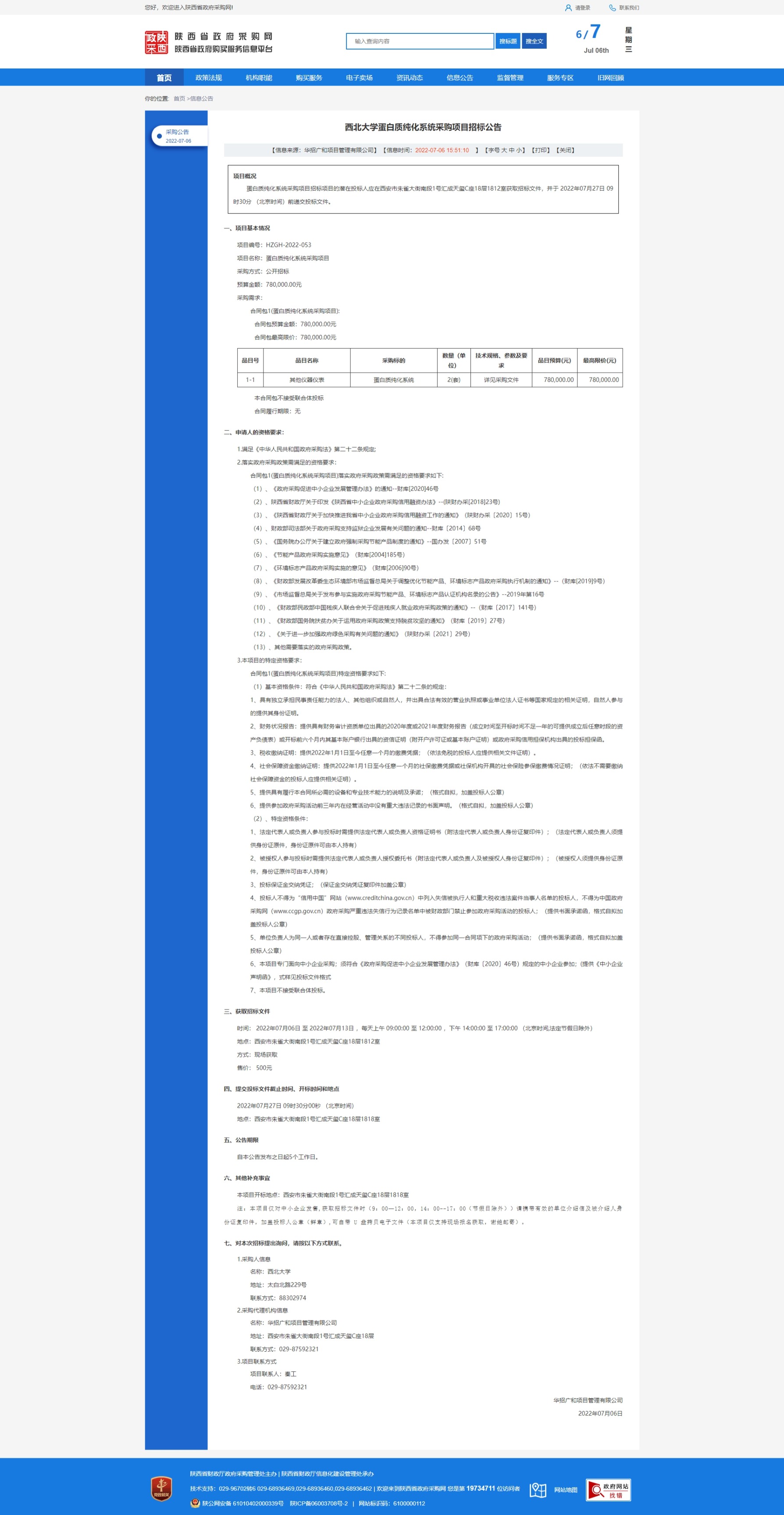 必赢3003no1线路检测中心蛋白质纯化系统采购项目招标公告 作者: 编辑:采购与招标办公室 时间:2022-07-06 原公告链接:http://www.ccgp-shaanxi.gov.cn/freecms/site/shaanxi/ggxx/info/2022/8a69c8f3812f549f0181d26b968a5f80.html?noticeType=001011¬iceId=bfc1034f-fd00-11ec-9a8e-08c0eb20c666