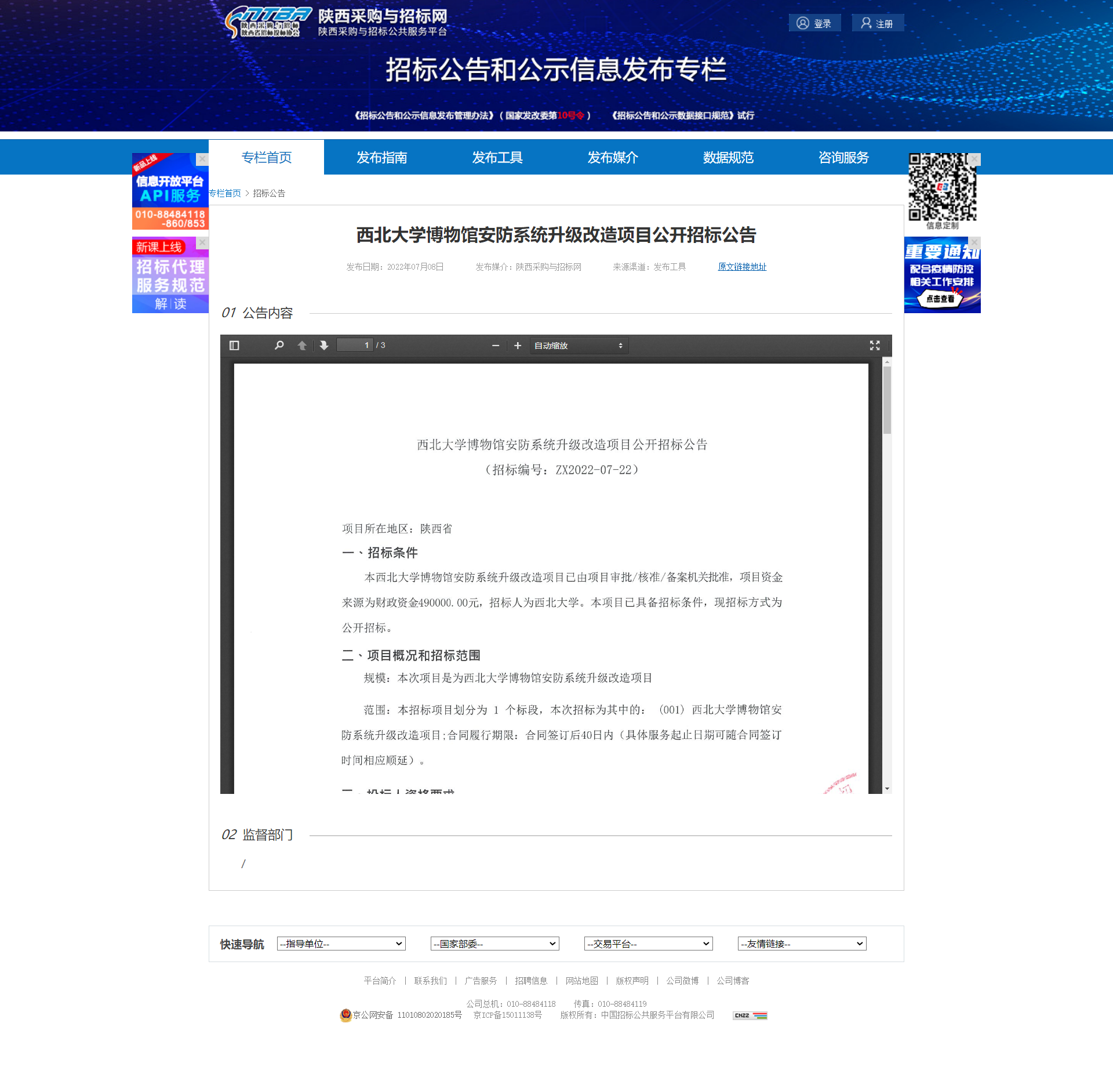 必赢3003no1线路检测中心博物馆安防系统升级改造项目公开招标公告 作者: 编辑:薛利娟 时间:2022-07-08 原公告链接:http://bulletin.sntba.com/biddingBulletin/2022-07-08/445128.html
