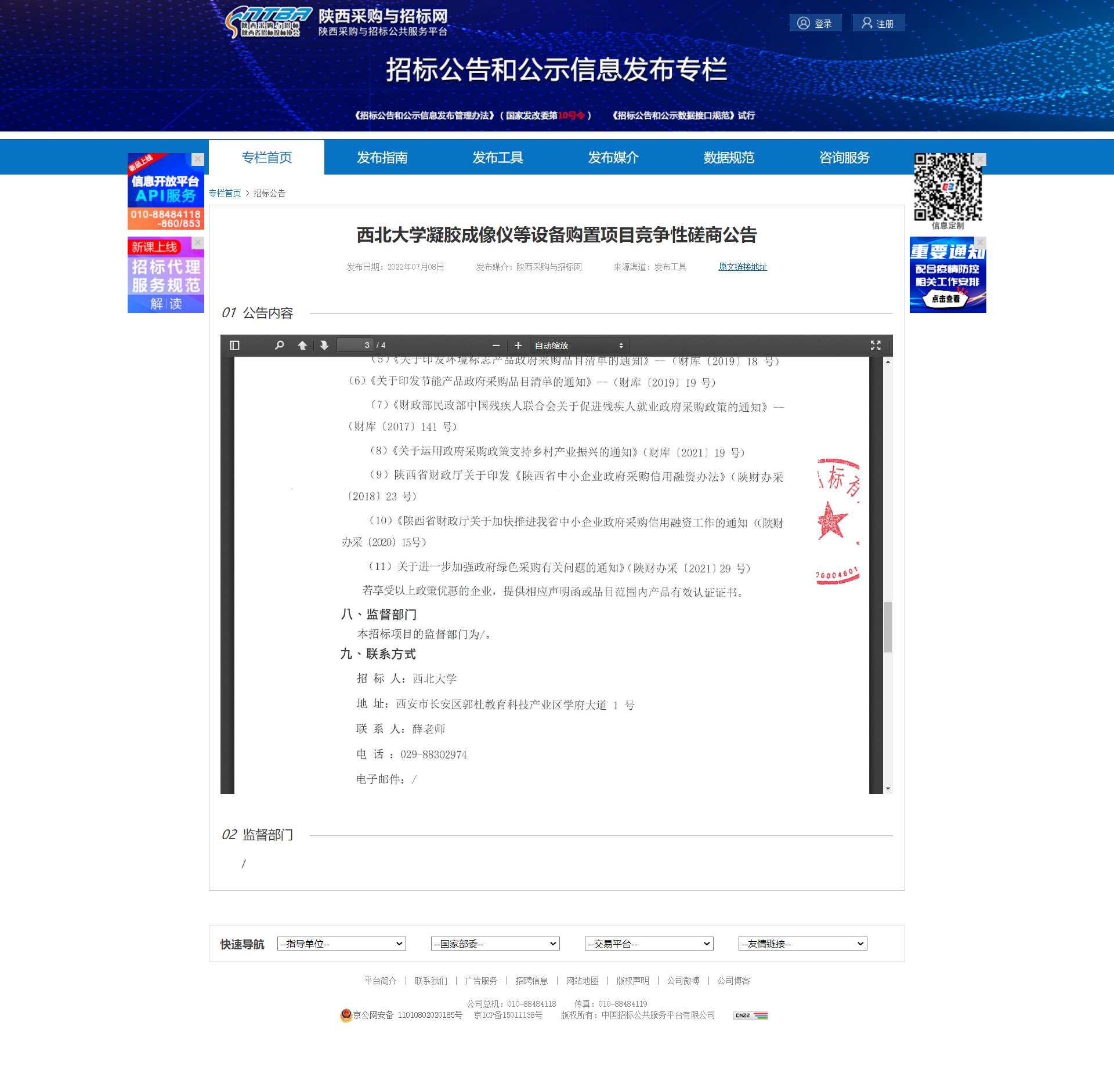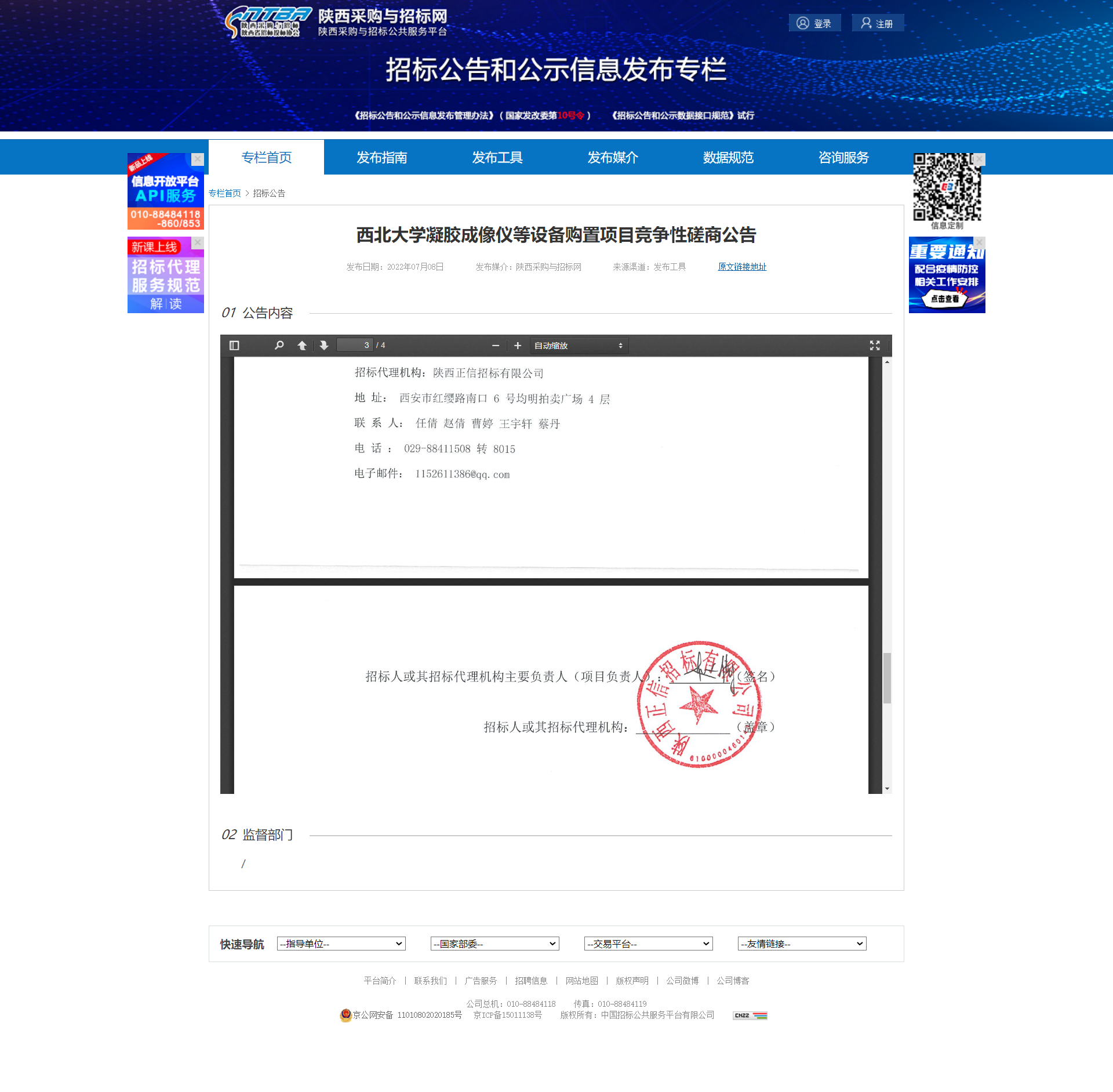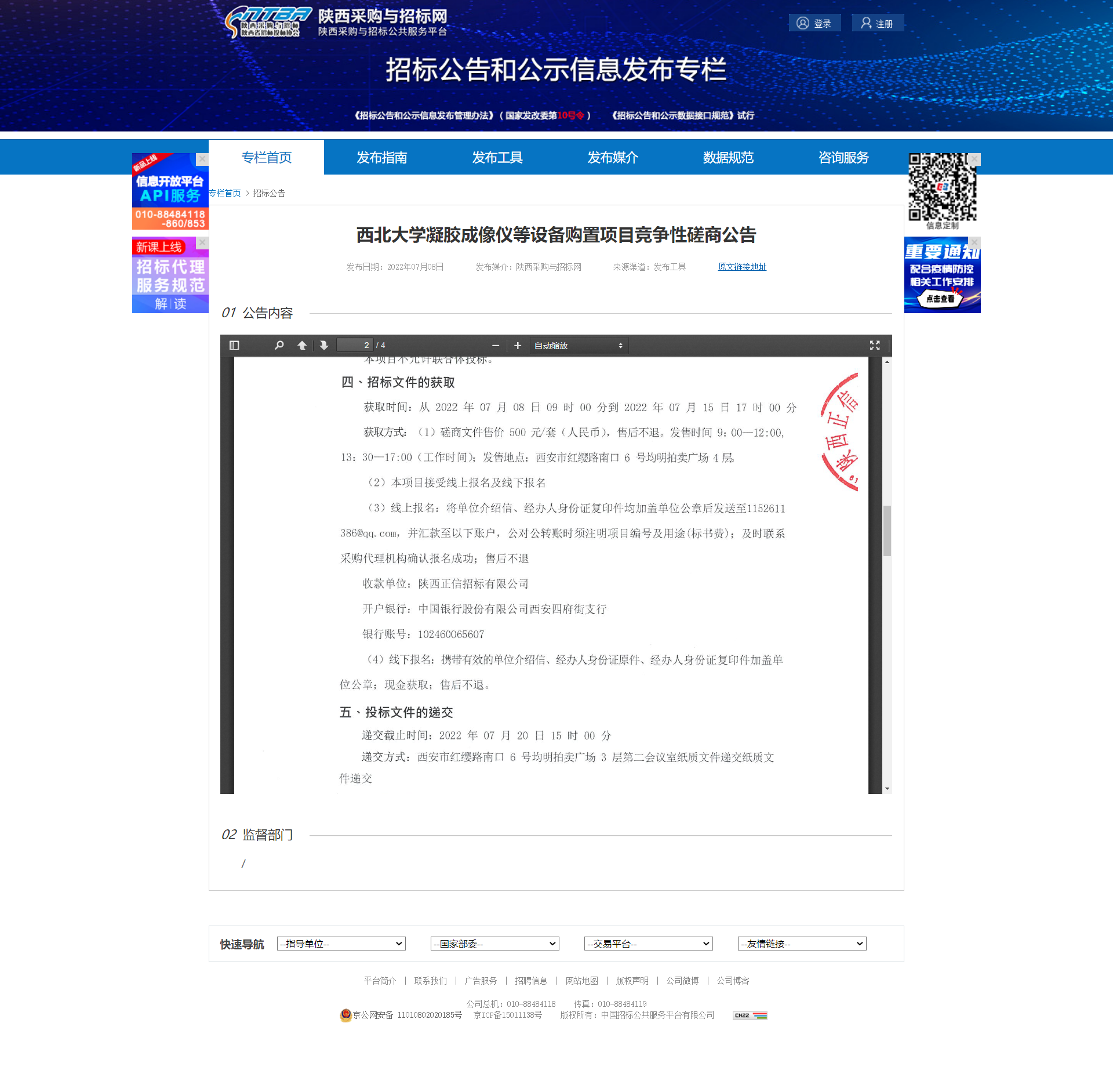 必赢3003no1线路检测中心凝胶成像仪等设备购置项目竞争性磋商公告 作者: 编辑:薛利娟 时间:2022-07-08 原公告链接:http://bulletin.sntba.com/biddingBulletin/2022-07-08/445120.html