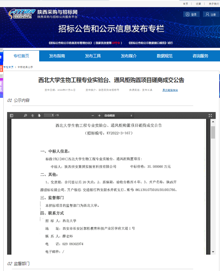 必赢3003no1线路检测中心生物工程专业实验台、通风柜购置项目磋商成交公告 作者: 编辑:薛利娟 时间:2022-07-21 原公告链接:http://bulletin.sntba.com/resultBulletin/2022-07-21/450756.html
