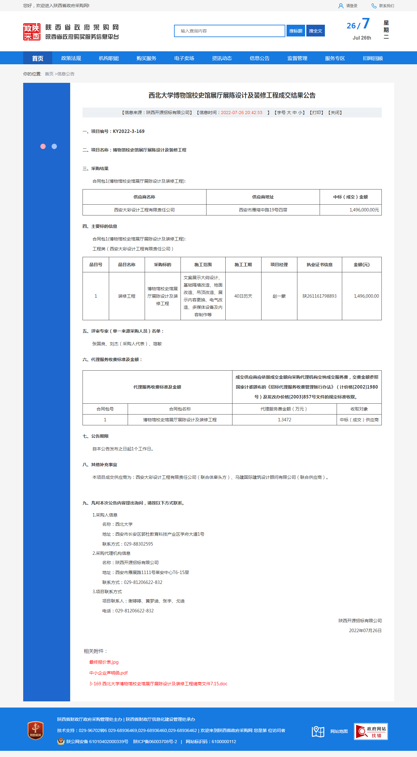 必赢3003no1线路检测中心博物馆校史馆展厅展陈设计及装修工程成交结果公告