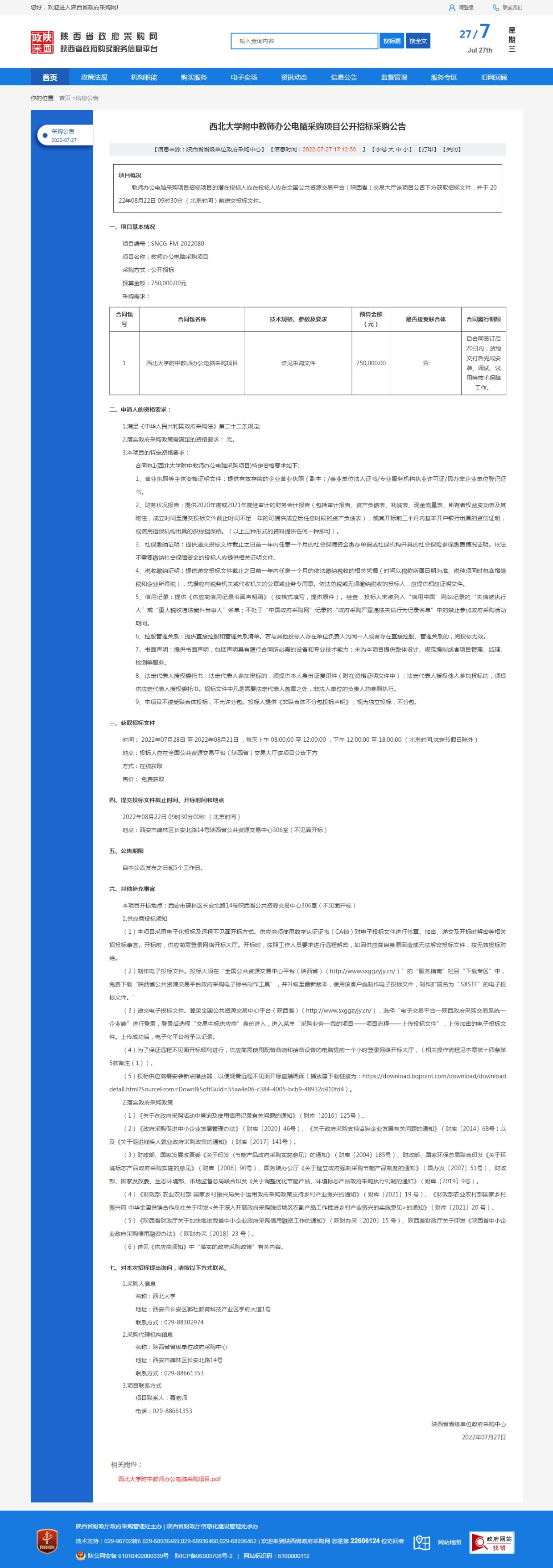 必赢3003no1线路检测中心附中教师办公电脑采购项目公开招标采购公告 作者: 编辑:采购与招标办公室 时间:2022-07-27 原公告链接:http://www.ccgp-shaanxi.gov.cn/freecms/site/shaanxi/ggxx/info/2022/8a69c0148234a3e101823833571f6ce4.html?noticeType=001011¬iceId=b145a98d-0d8c-11ed-9a8e-08c0eb20c666