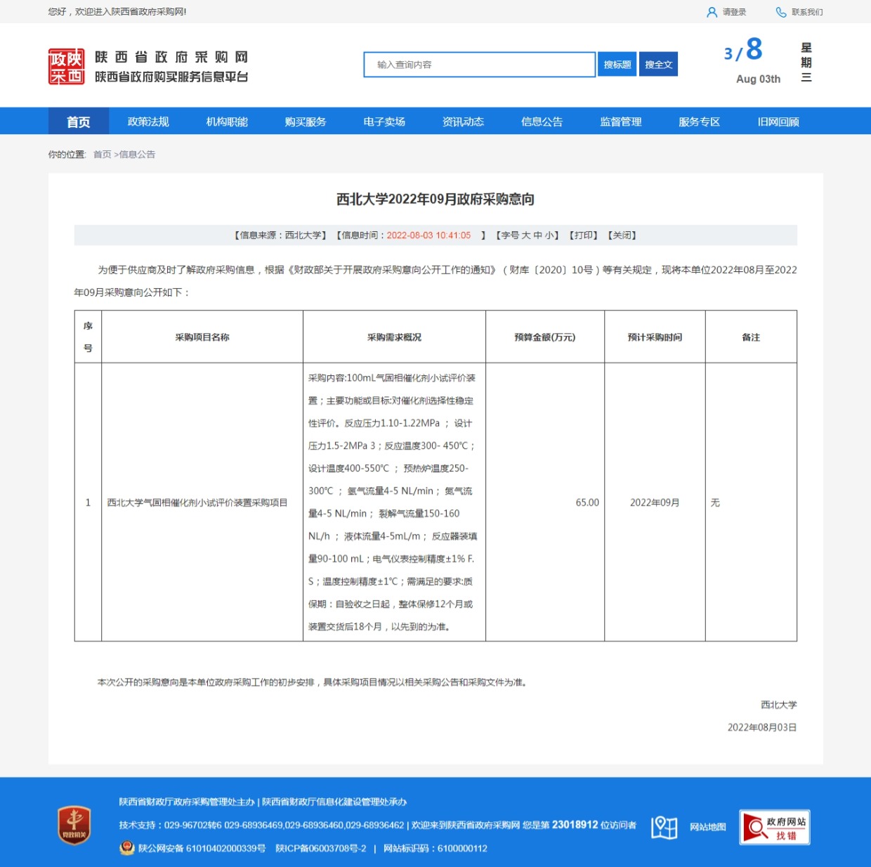 必赢3003no1线路检测中心2022年09月政府采购意向 作者: 编辑:采购与招标办公室 时间:2022-08-03 原公告链接:http://www.ccgp-shaanxi.gov.cn/freecms/site/shaanxi/ggxx/info/2022/8a69c772825d981a0182618af40b545a.html?noticeType=59¬iceId=21ebc324-12d6-11ed-9a8e-08c0eb20c666