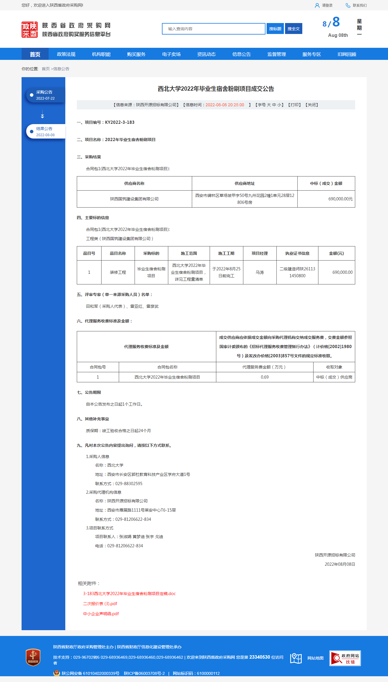 必赢3003no1线路检测中心2022年毕业生宿舍粉刷项目成交公告