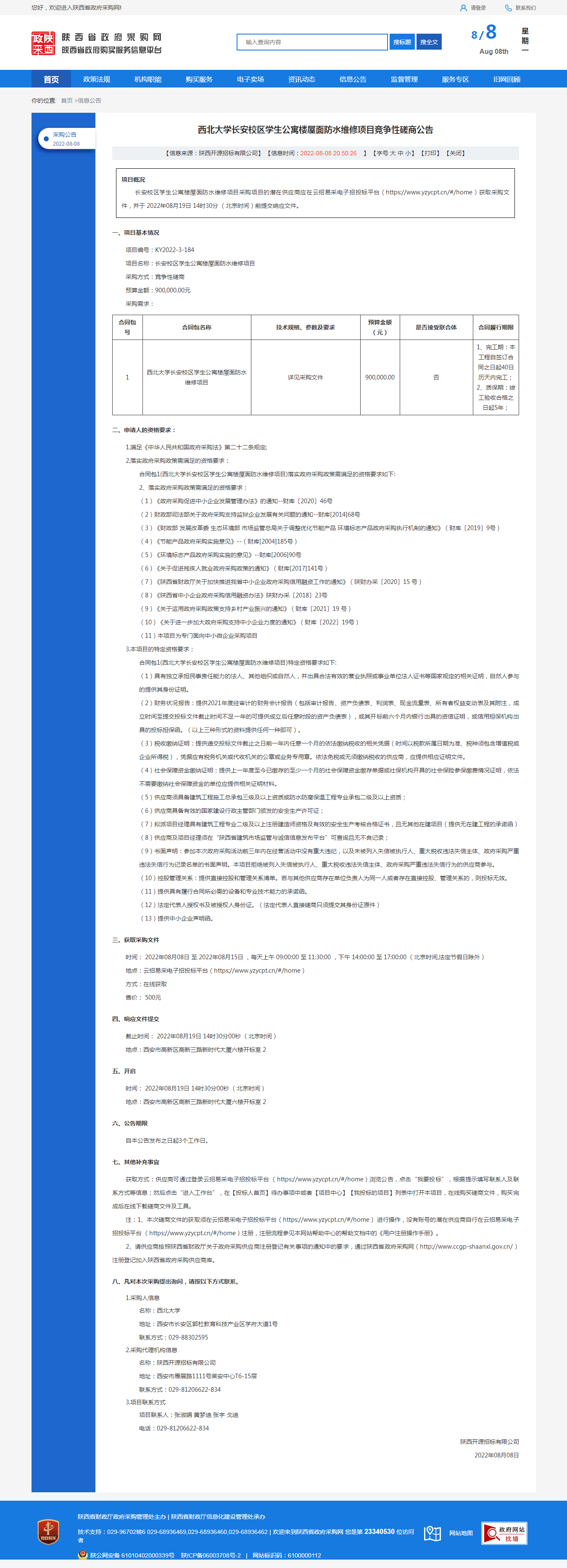 必赢3003no1线路检测中心长安校区学生公寓楼屋面防水维修项目竞争性磋商公告