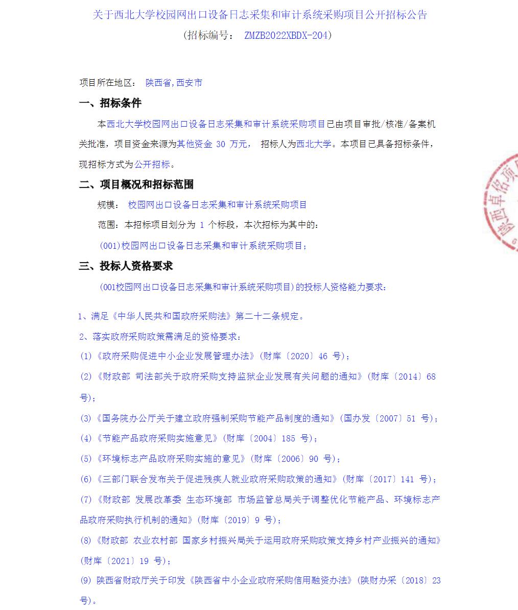 必赢3003no1线路检测中心校园网出口设备日志采集和审计系统采购项目公开招标公告