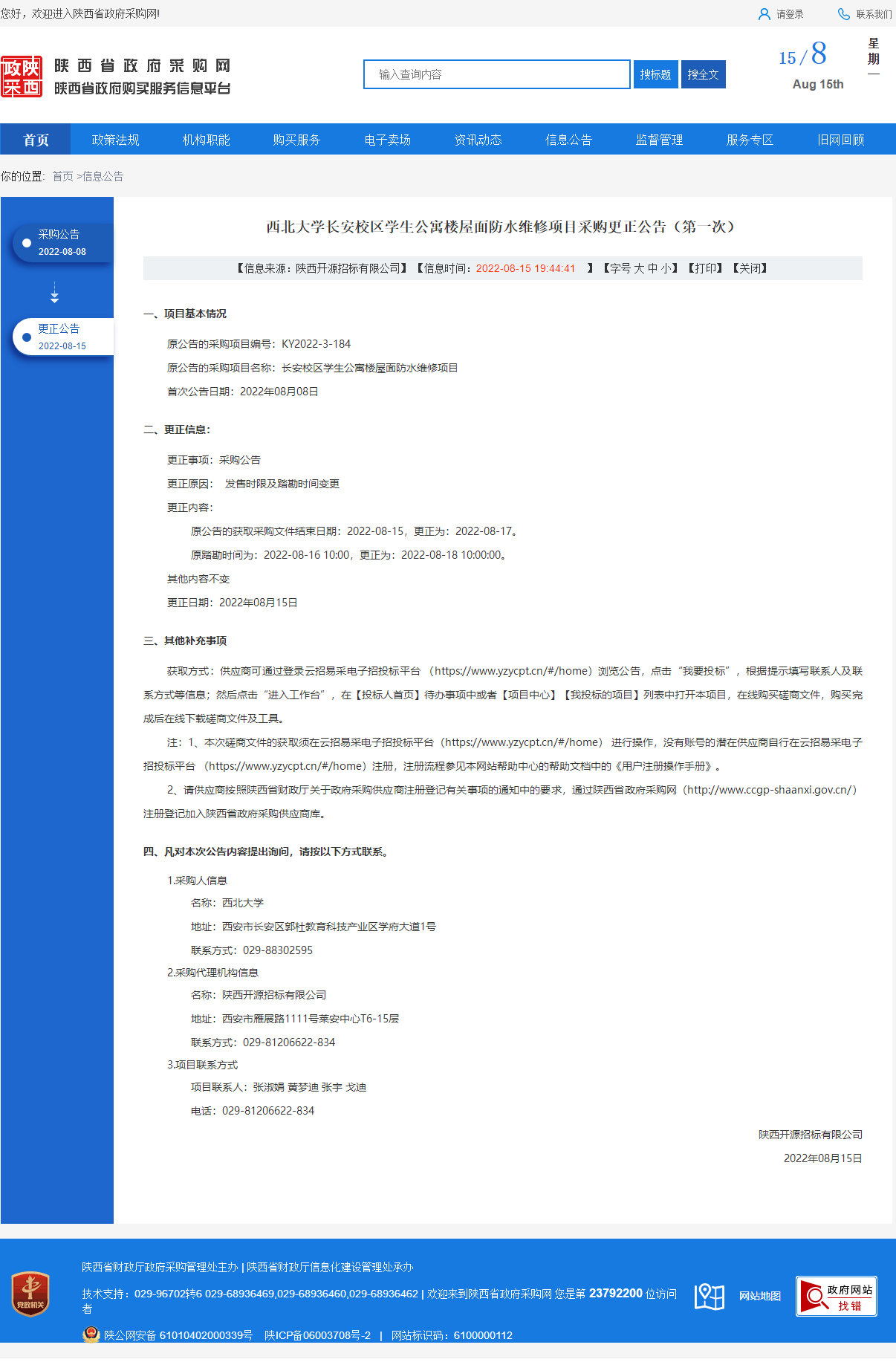 必赢3003no1线路检测中心长安校区学生公寓楼屋面防水维修项目采购更正公告(第一次)