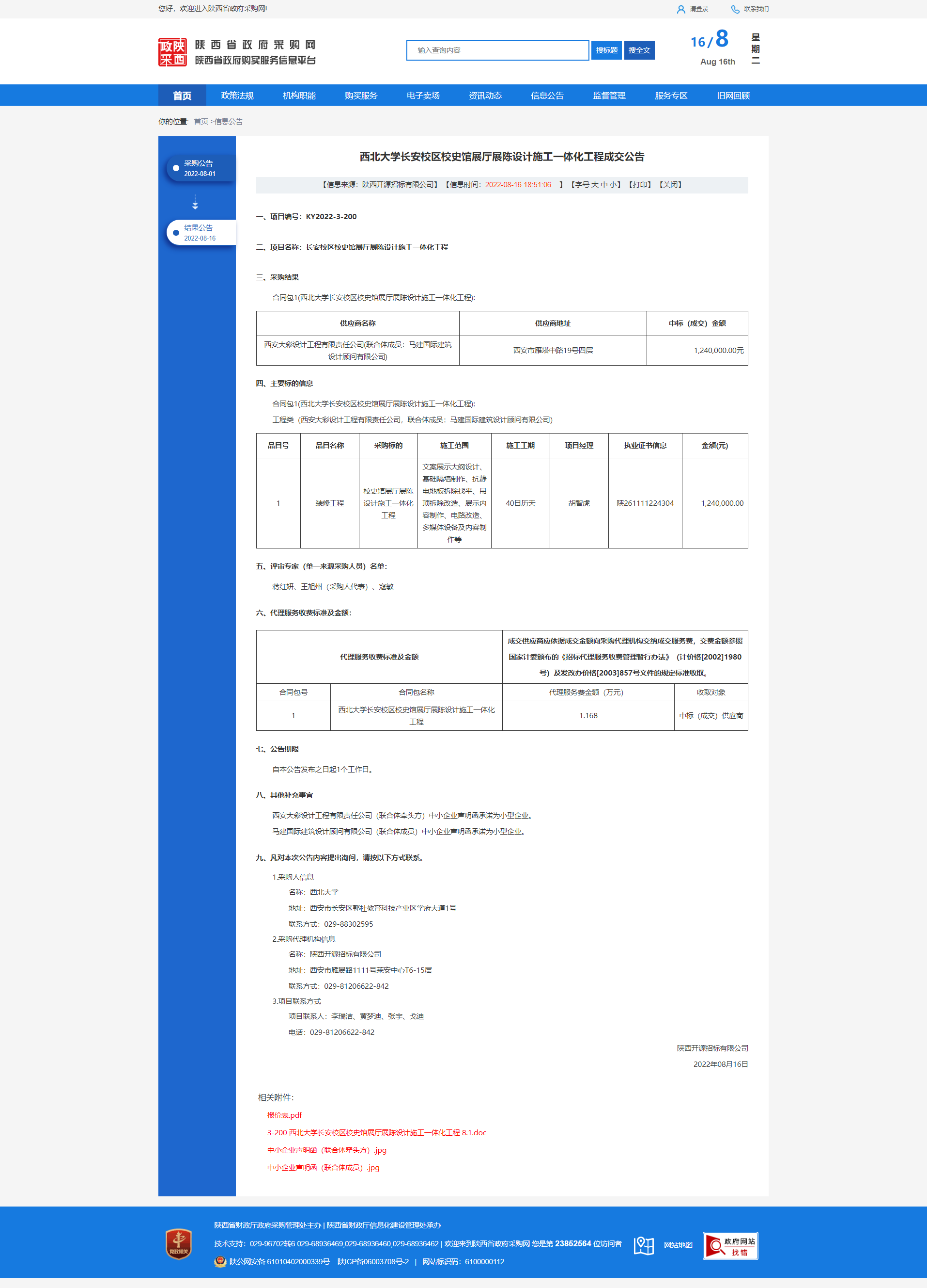 必赢3003no1线路检测中心长安校区校史馆展厅展陈设计施工一体化工程成交公告