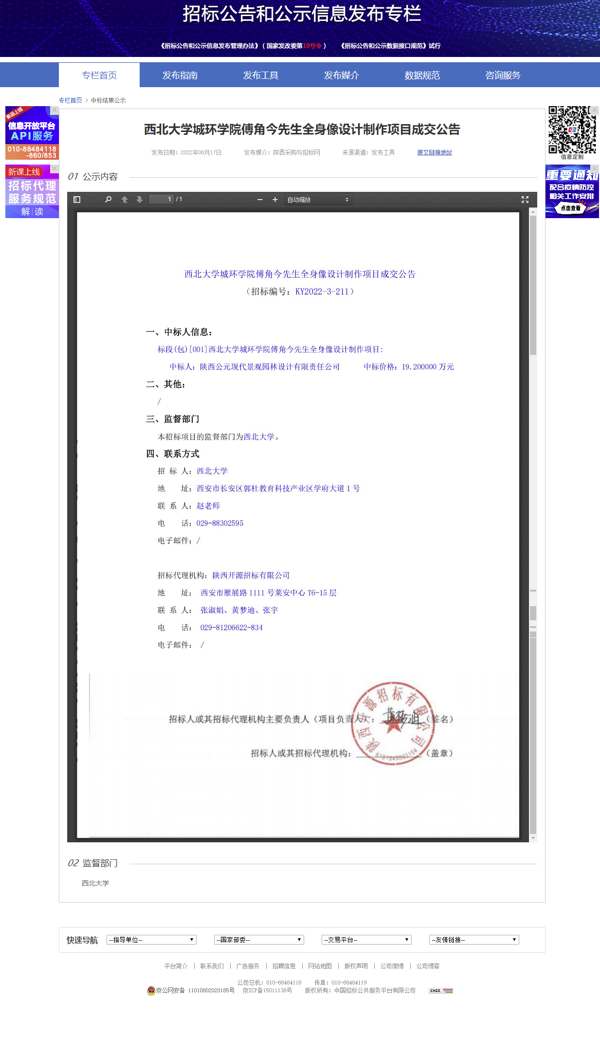 必赢3003no1线路检测中心城环学院傅角今先生全身像设计制作项目成交公告
