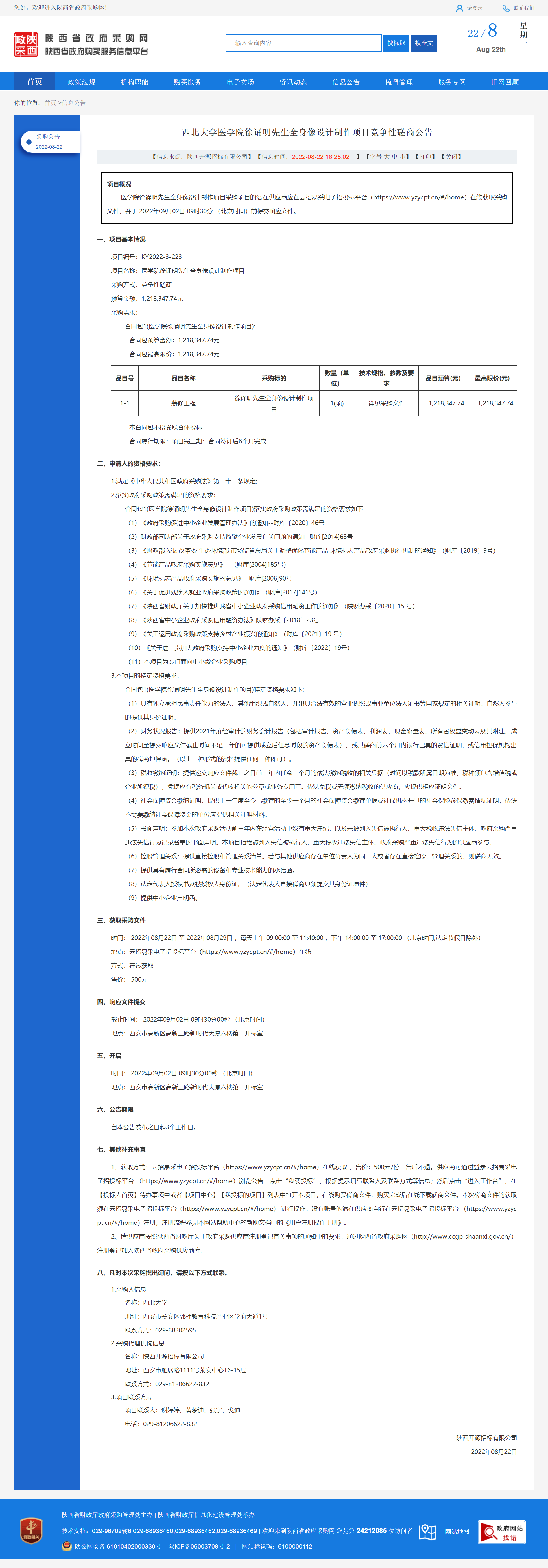 必赢3003no1线路检测中心医学院徐诵明先生全身像设计制作项目竞争性磋商公告
