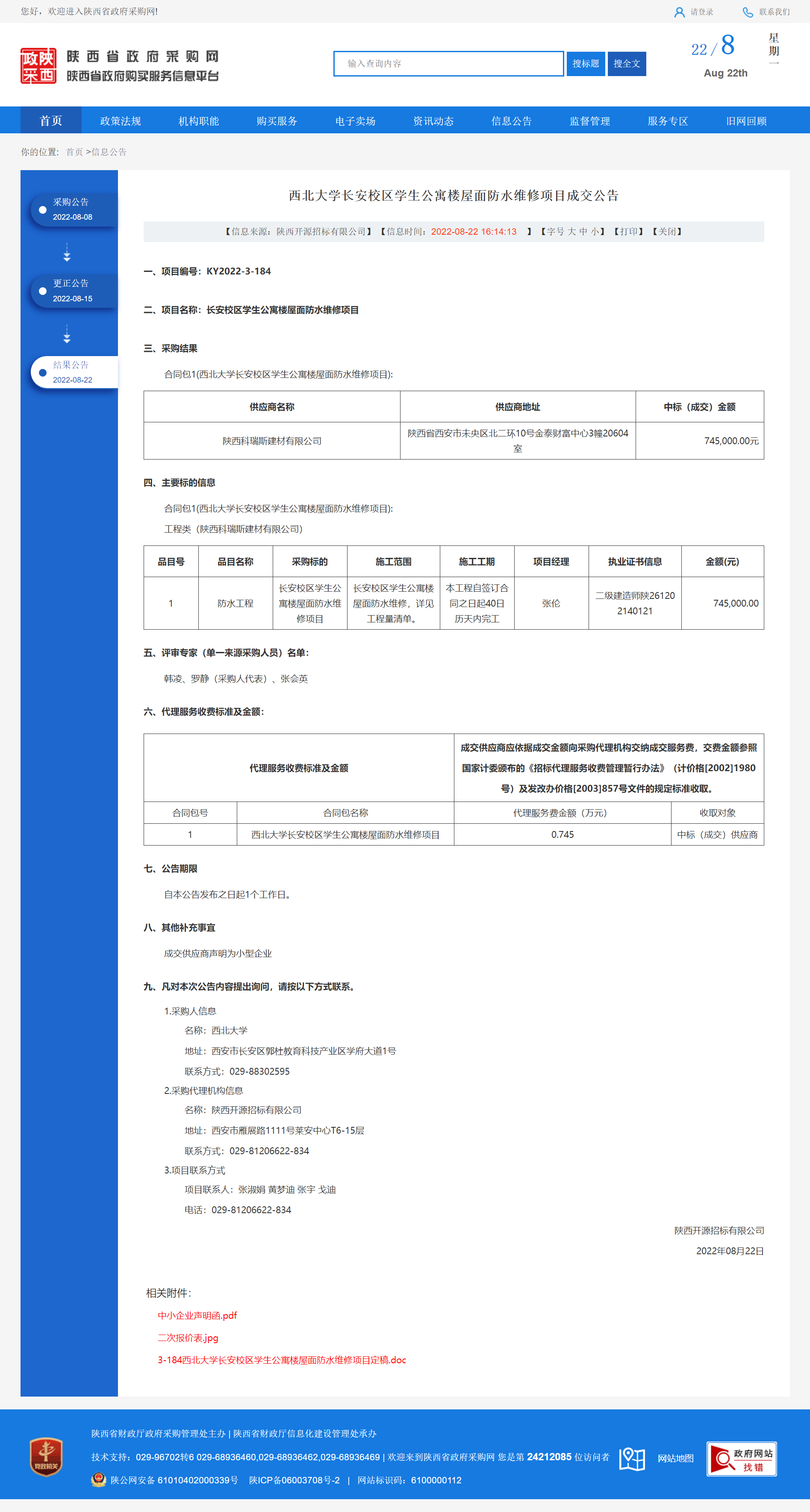 必赢3003no1线路检测中心长安校区学生公寓楼屋面防水维修项目成交公告