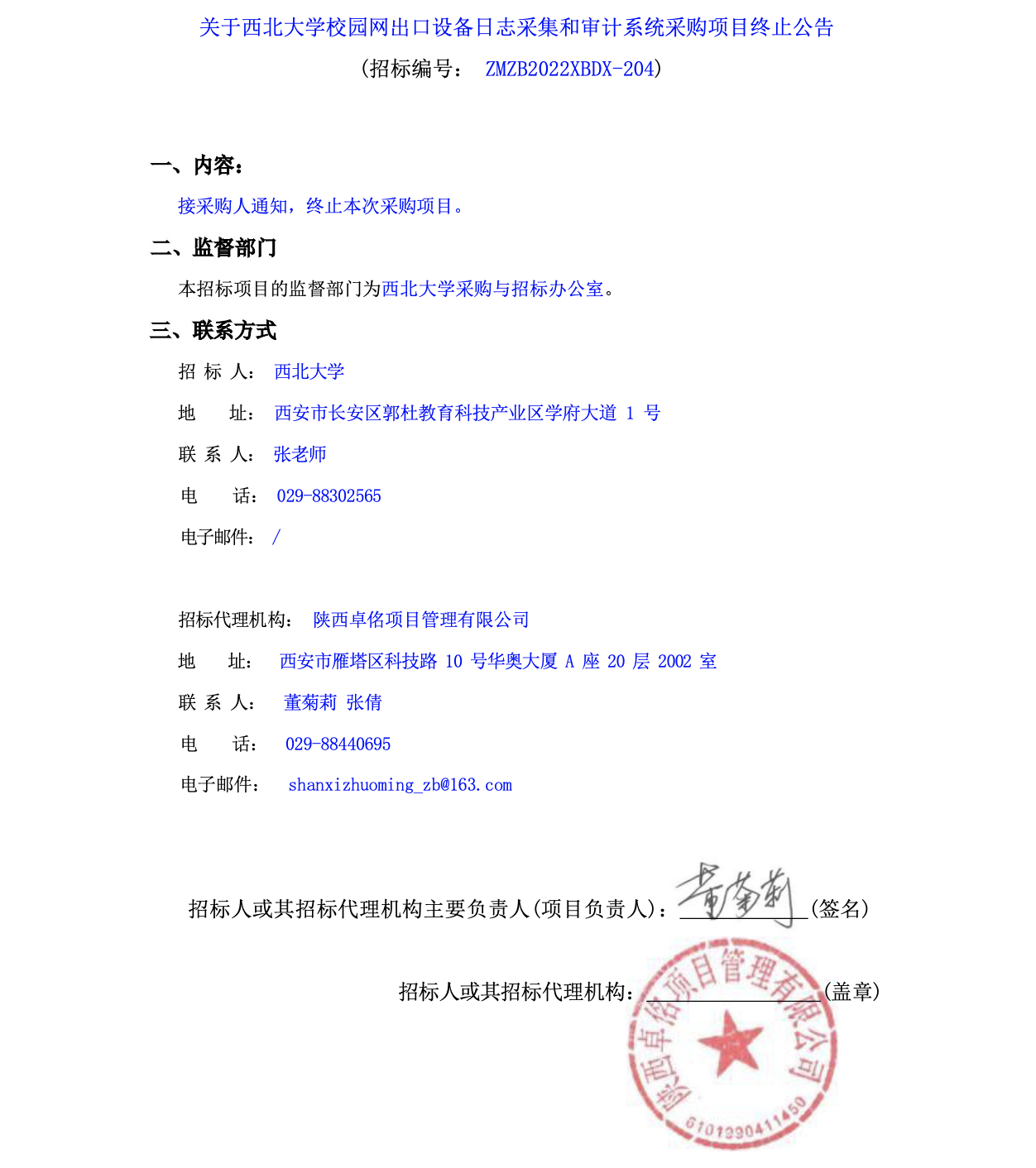 关于必赢3003no1线路检测中心校园网出口设备日志采集和审计系统采购项目终止公告