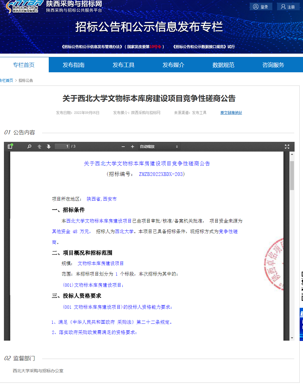 关于必赢3003no1线路检测中心文物标本库房建设项目竞争性磋商公告 作者: 编辑:采购与招标办公室 时间:2022-09-06 原公告链接:http://bulletin.sntba.com/biddingBulletin/2022-09-05/470289.html