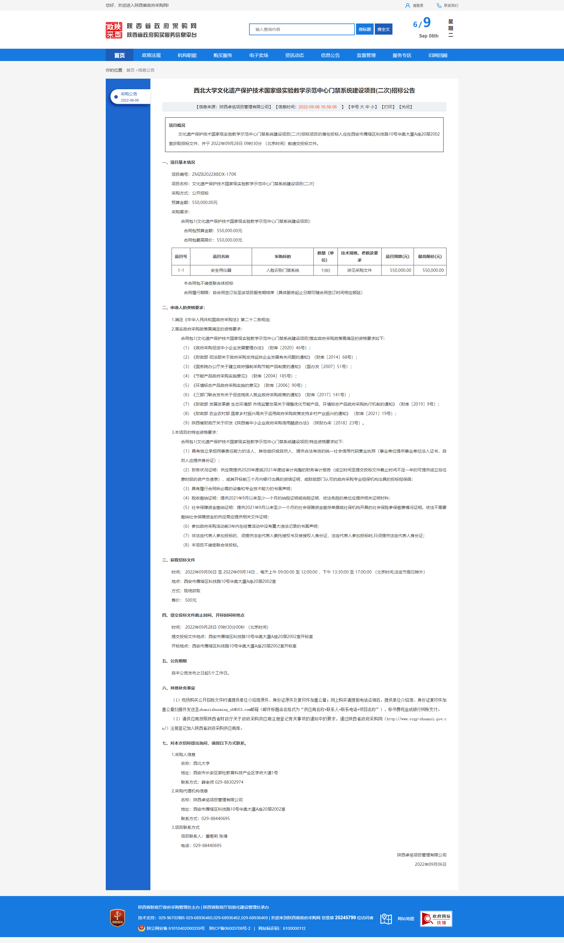 必赢3003no1线路检测中心文化遗产保护技术国家级实验教学示范中心门禁系统建设项目(二次)招标公告 作者: 编辑:采购与招标办公室 时间:2022-09-06 原公告链接:http://www.ccgp-shaanxi.gov.cn/freecms/site/shaanxi/ggxx/info/2022/8a69c63182a32538018311f9ef2e1370.html?noticeType=001011¬iceId=3d8b61ff-2dc2-11ed-9a8e-08c0eb20c666