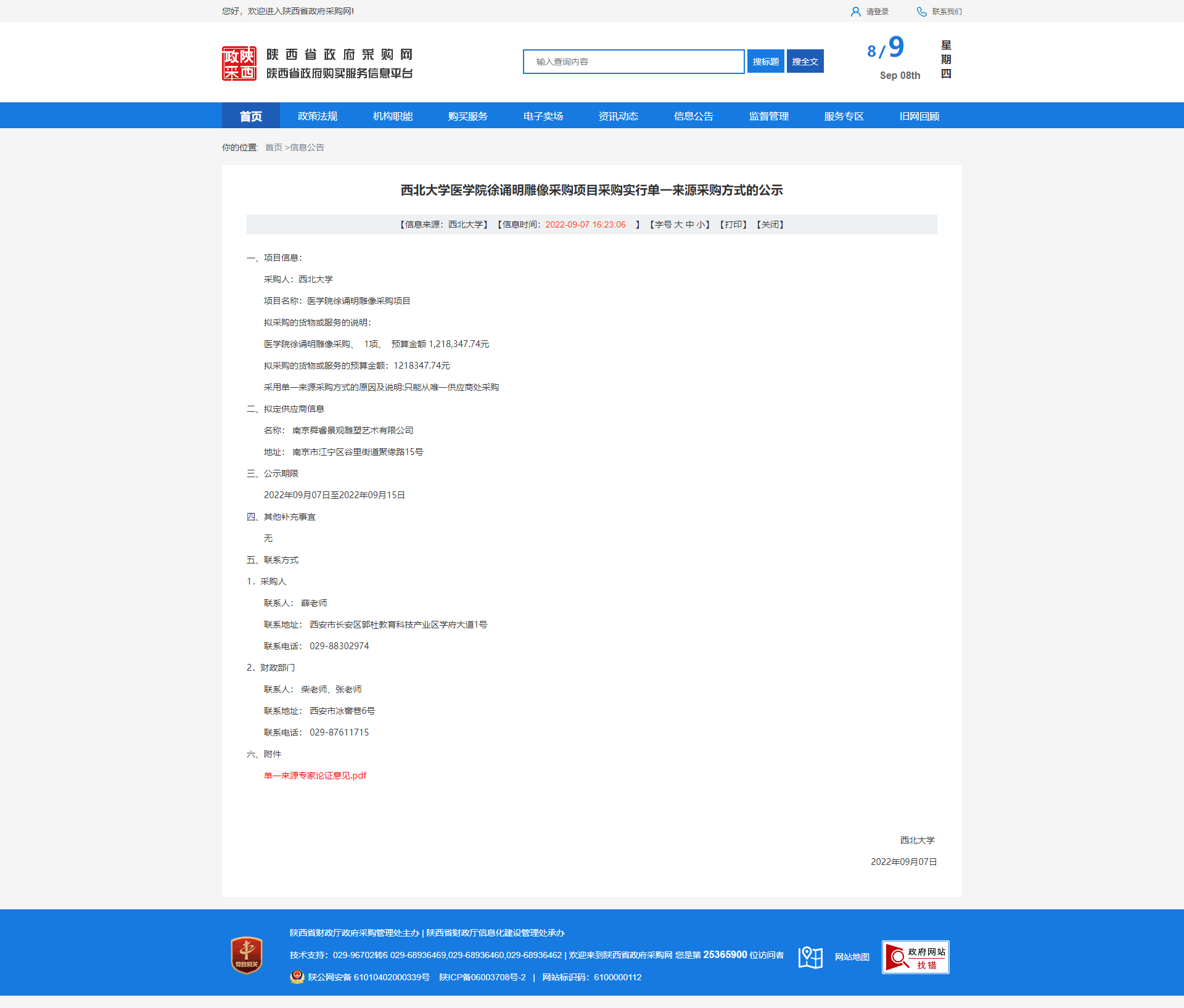 必赢3003no1线路检测中心医学院徐诵明雕像采购项目采购实行单一来源采购方式的公示 作者: 编辑:采购与招标办公室 时间:2022-09-08 原公告链接:http://www.ccgp-shaanxi.gov.cn/freecms/site/shaanxi/ggxx/info/2022/8a69c4ad8315b364018316aed0342bd2.html?noticeType=001051¬iceId=c9dcf4ee-2e86-11ed-9a8e-08c0eb20c666