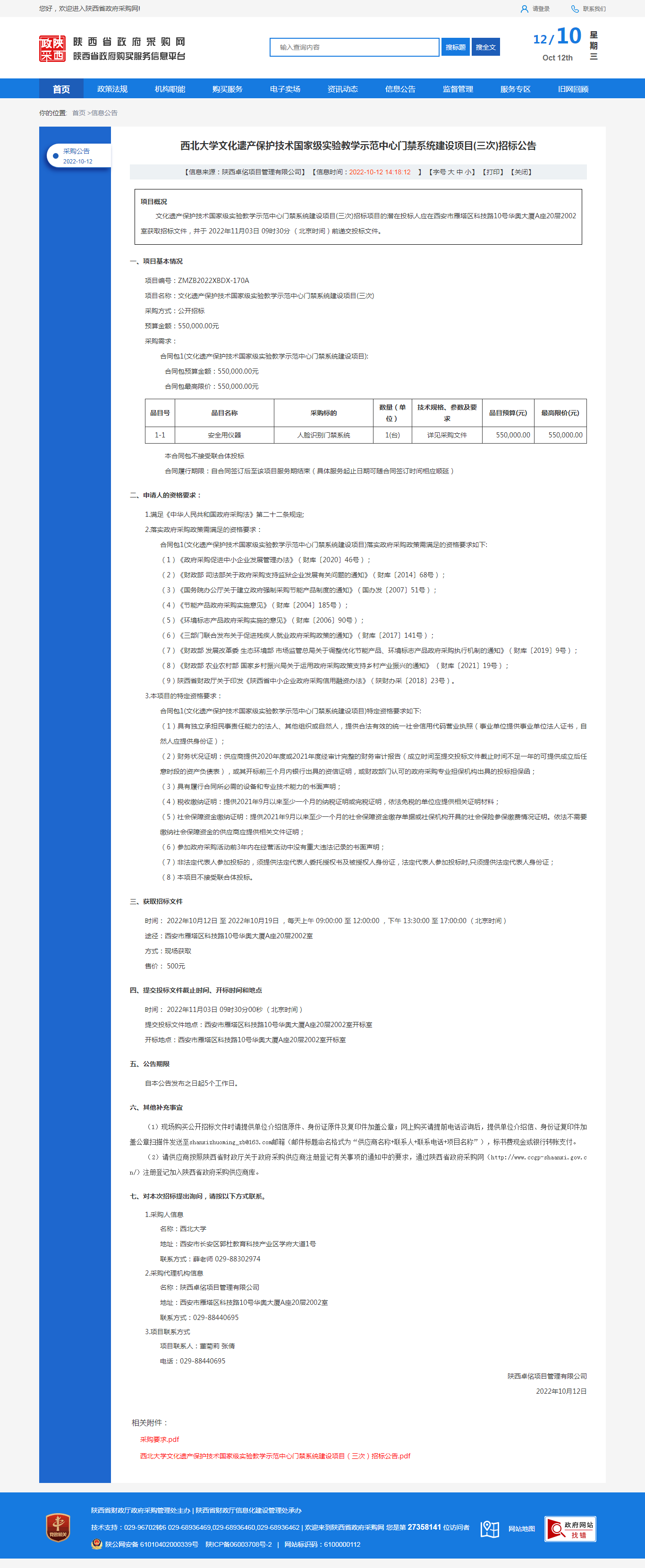 必赢3003no1线路检测中心文化遗产保护技术国家级实验教学示范中心门禁系统建设项目(三次)招标公告 作者: 编辑:采购与招标办公室 时间:2022-10-12 原公告链接:http://www.ccgp-shaanxi.gov.cn/freecms/site/shaanxi/ggxx/info/2022/8a69c29183b278190183ca109d691084.html?noticeType=001011¬iceId=37f82e6c-49f6-11ed-9a8e-08c0eb20c666