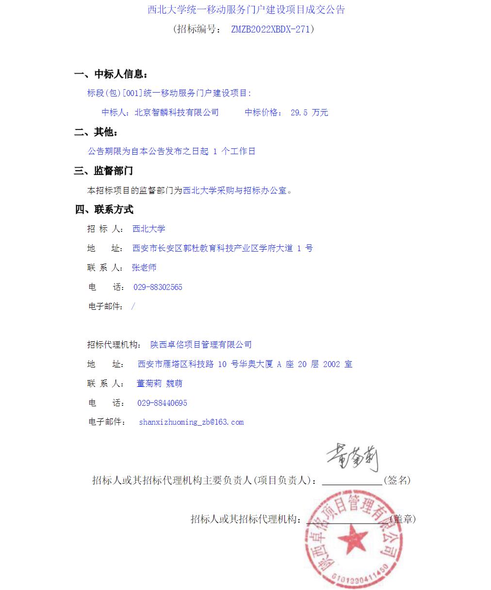 必赢3003no1线路检测中心统一移动服务门户建设项目成交公告