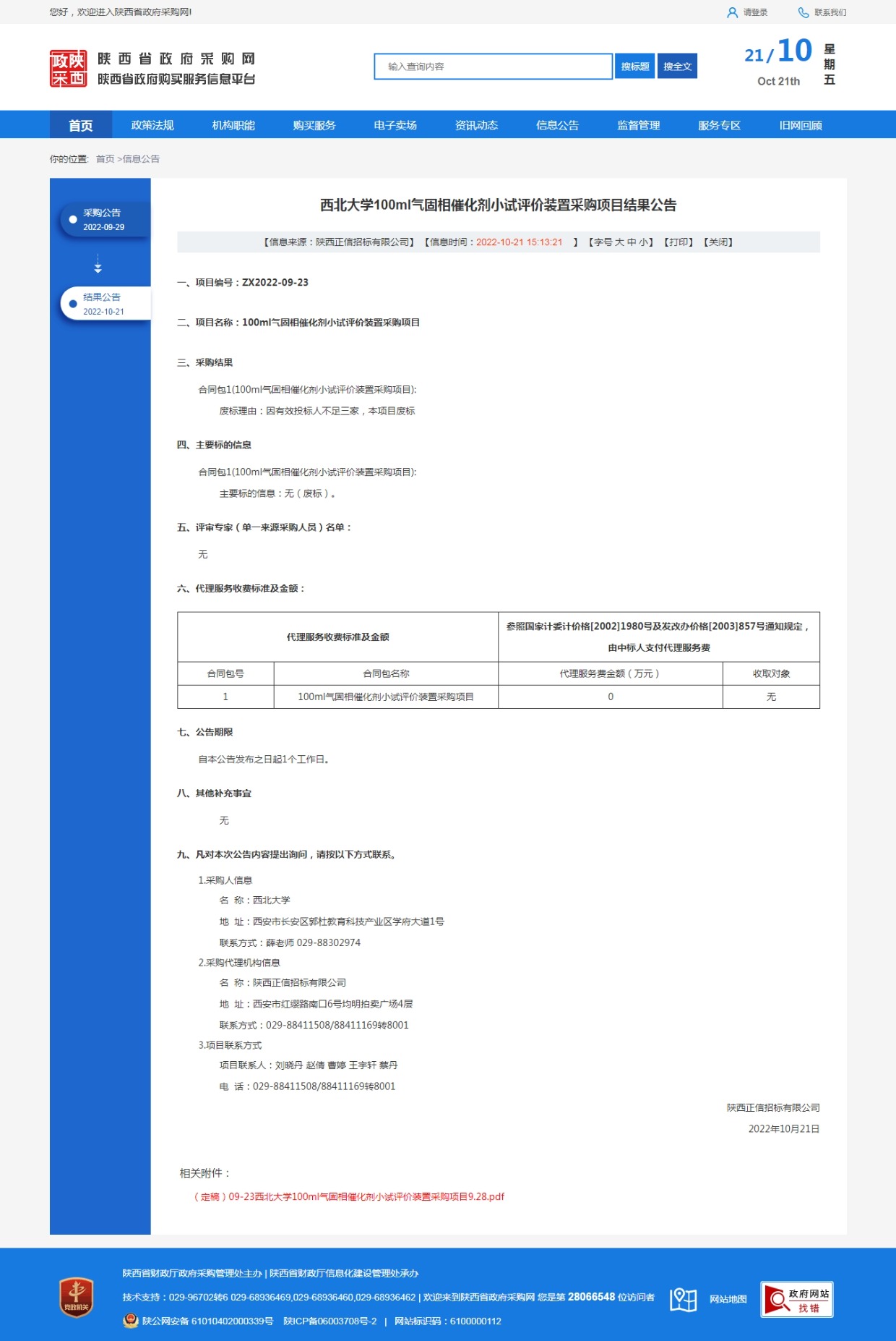 必赢3003no1线路检测中心100ml气固相催化剂小试评价装置采购项目结果公告 作者: 编辑:采购与招标办公室 时间:2022-10-21 原公告链接:http://www.ccgp-shaanxi.gov.cn/freecms/site/shaanxi/ggxx/info/2022/8a69c29183b278190183f9504bd56da6.html?noticeType=001006¬iceId=6e4daf58-5110-11ed-9a8e-08c0eb20c666
