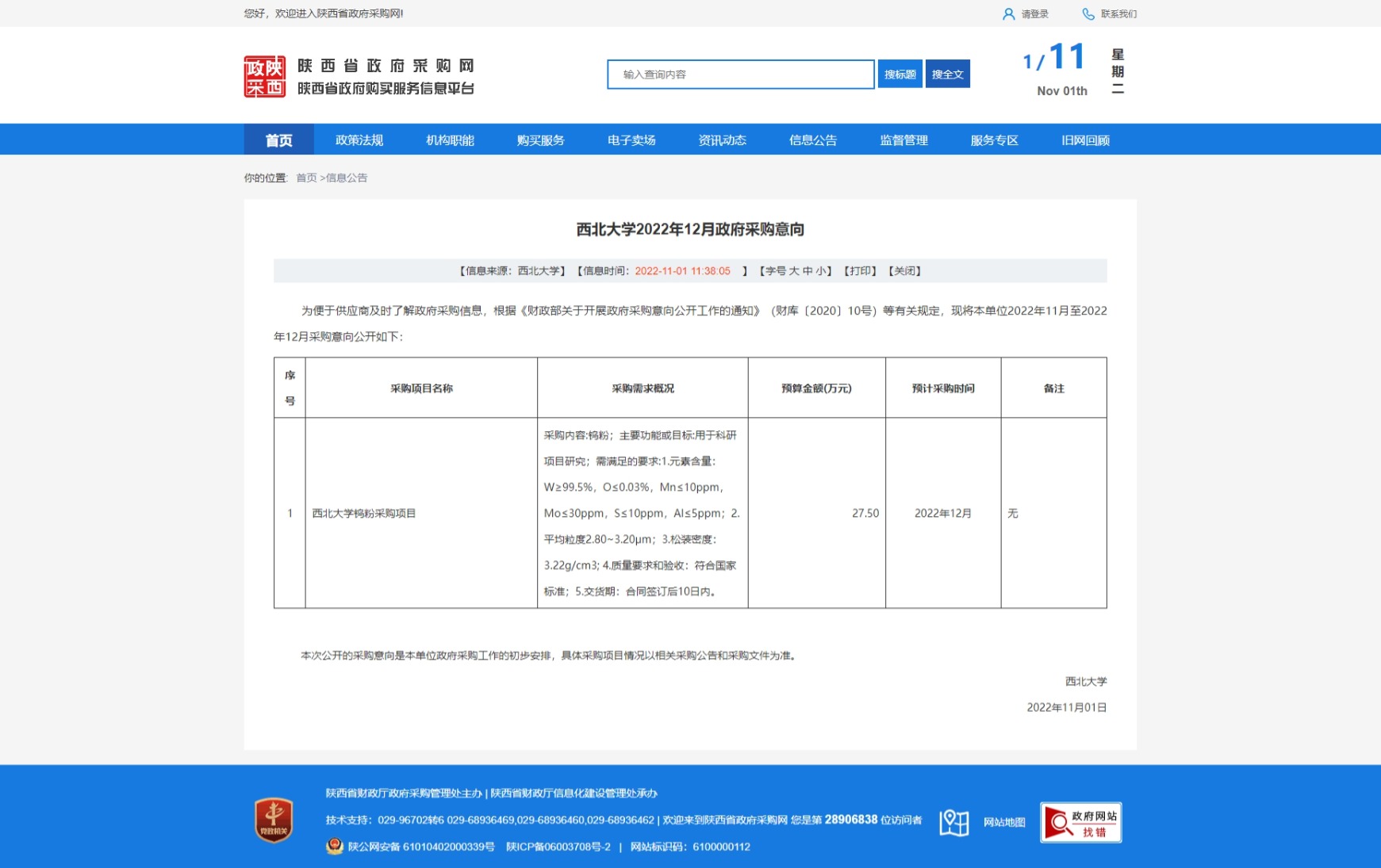 必赢3003no1线路检测中心2022年12月政府采购意向 作者: 编辑:采购与招标办公室 时间:2022-11-01 原公告链接:http://www.ccgp-shaanxi.gov.cn/freecms/site/shaanxi/ggxx/info/2022/8a69c851842917c901843142ef485753.html?noticeType=59¬iceId=3378fddc-5997-11ed-9a8e-08c0eb20c666