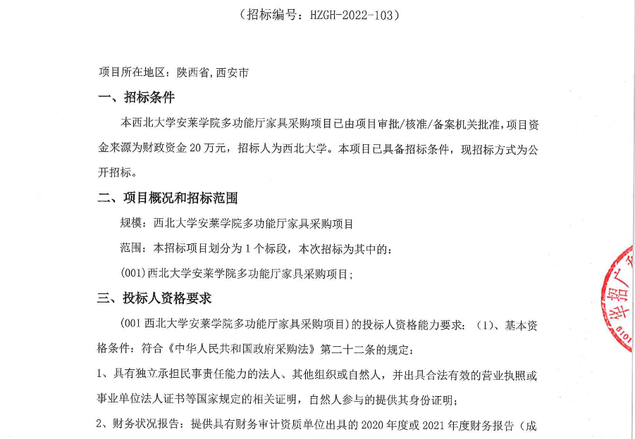 必赢3003no1线路检测中心安莱学院多功能厅家具采购项目招标公告 作者: 编辑:采购与招标办公室 时间:2022-11-16 原公告链接:http://bulletin.sntba.com/biddingBulletin/2022-11-16/499529.html