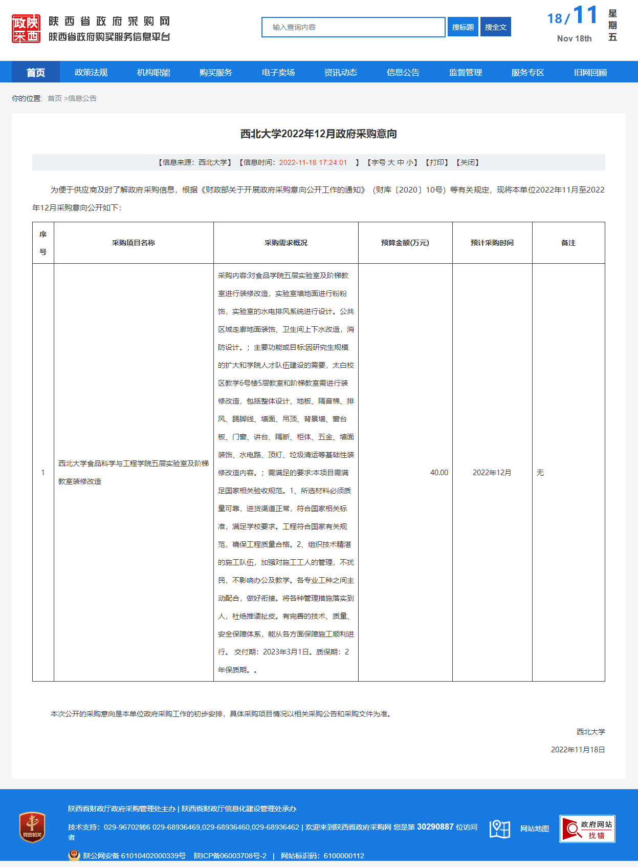 必赢3003no1线路检测中心2022年12月政府采购意向