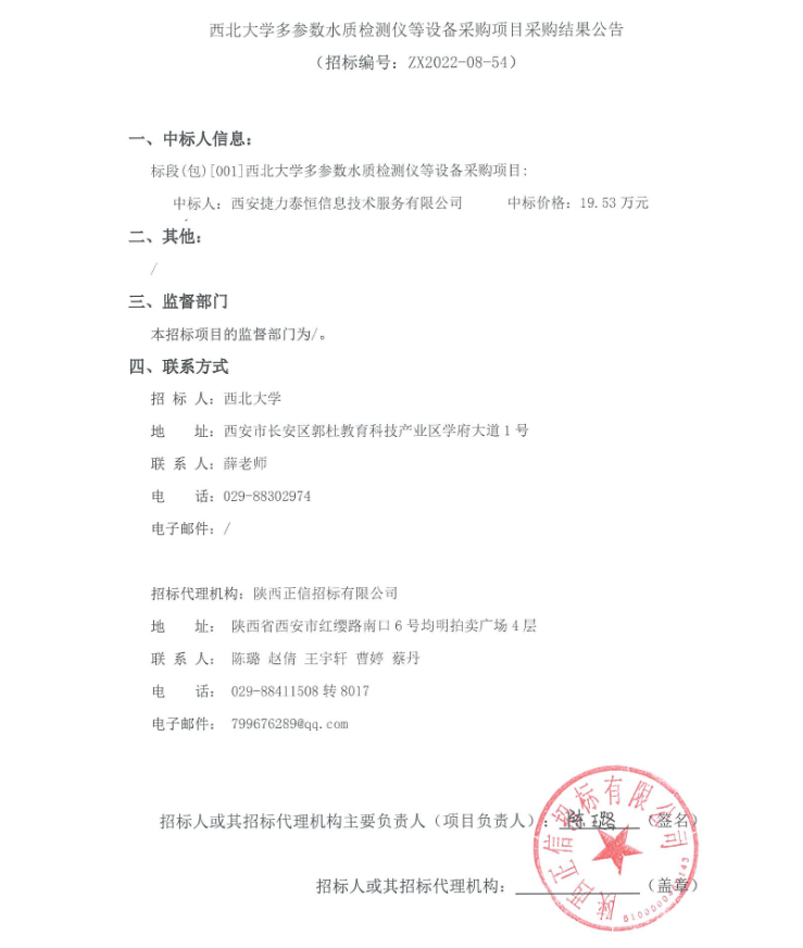 必赢3003no1线路检测中心多参数水质检测仪等设备采购项目采购结果公告