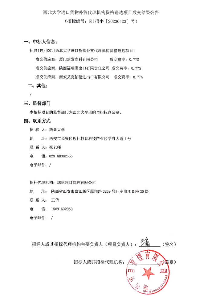 必赢3003no1线路检测中心进口货物外贸代理机构资格遴选项目成交结果公告