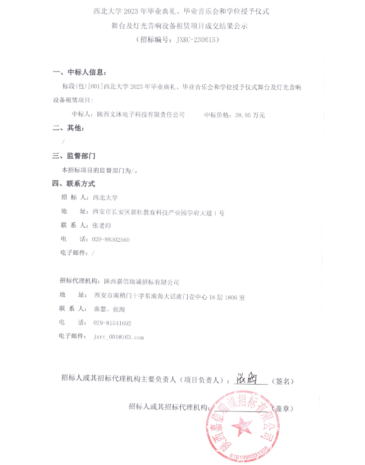 必赢3003no1线路检测中心2023年毕业典礼、毕业音乐会和学位授予仪式舞台及灯光音响设备租赁项目成交结果公示