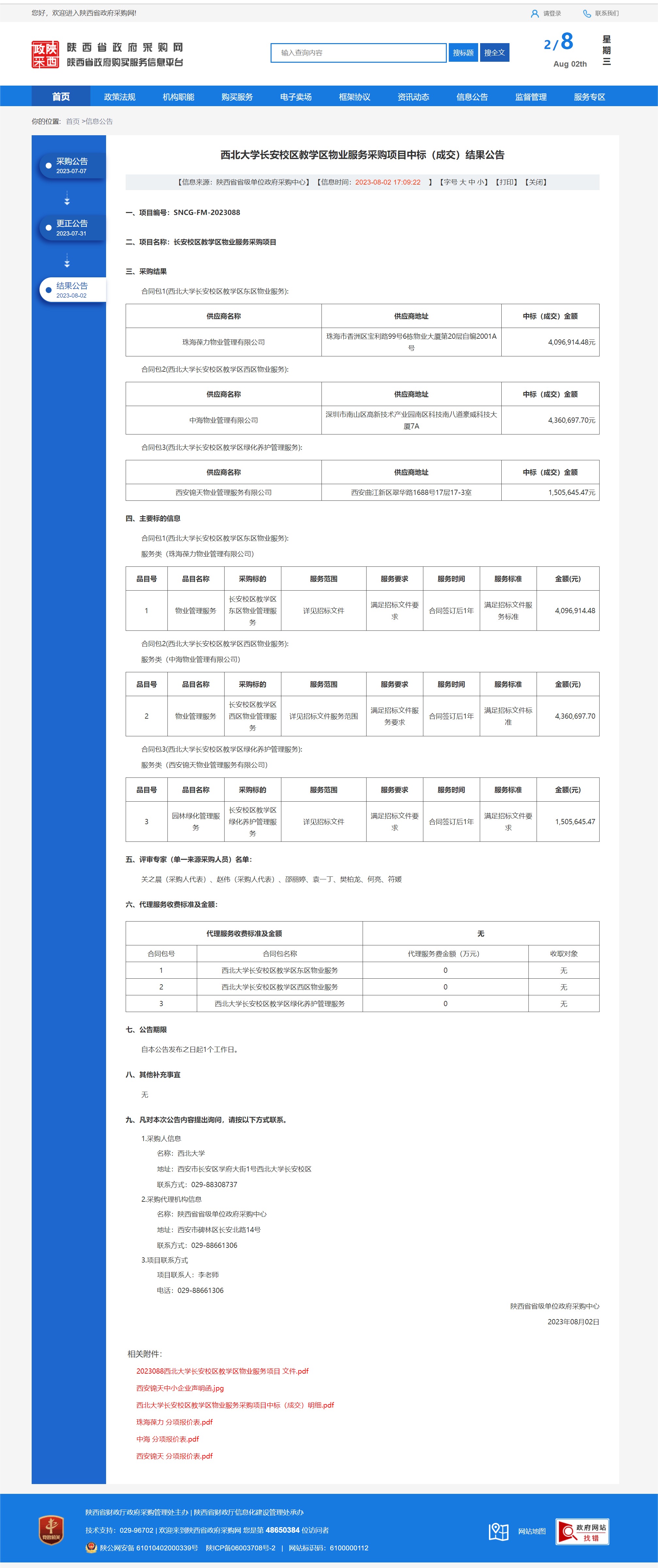 必赢3003no1线路检测中心长安校区教学区物业服务采购项目中标(成交)结果公告