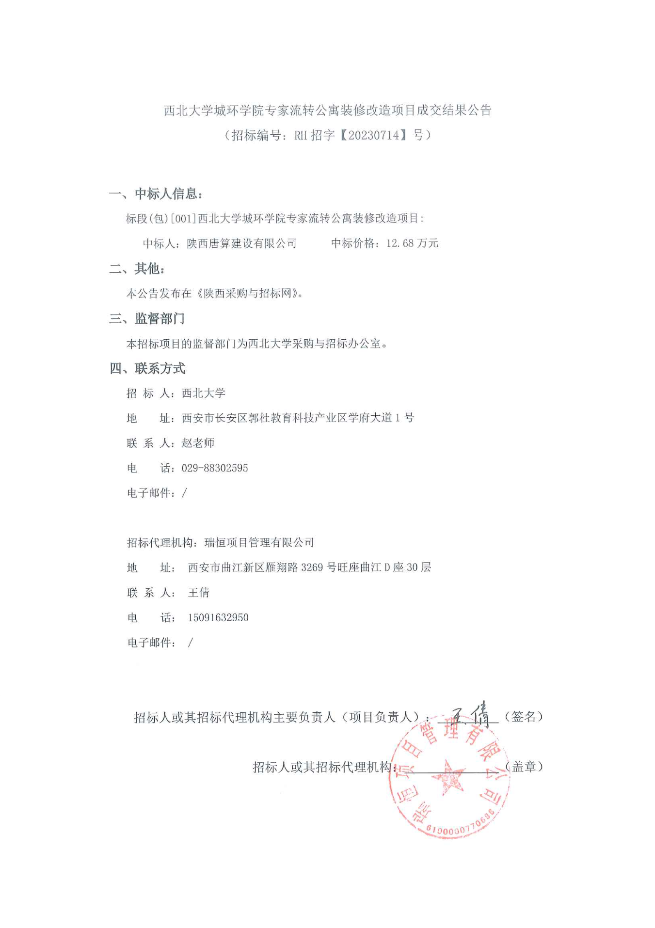 必赢3003no1线路检测中心城环学院专家流转公寓装修改造项目成交结果公告