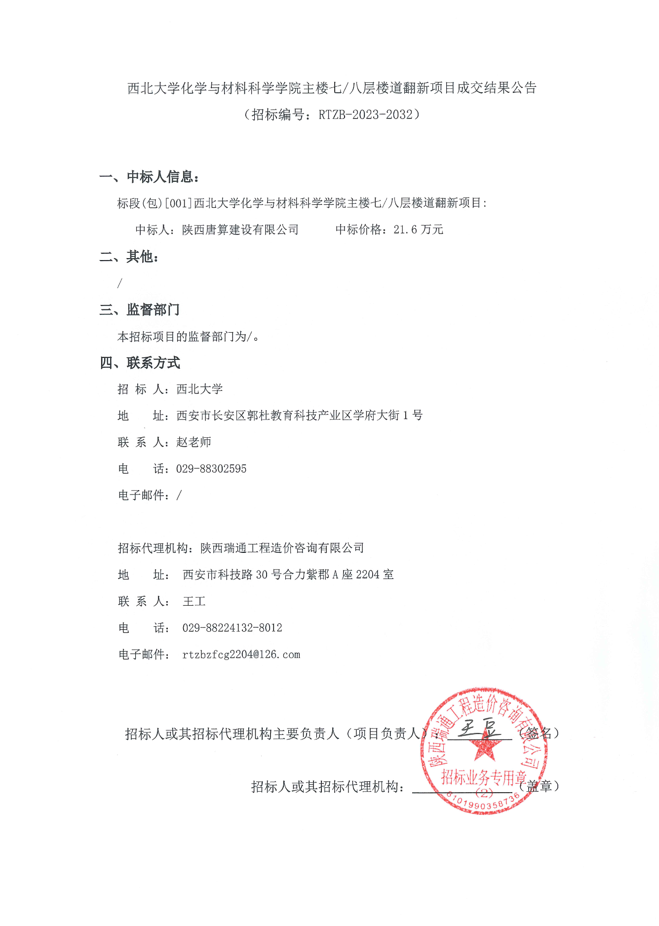 必赢3003no1线路检测中心化学与材料科学学院主楼七/八层楼道翻新项目成交结果公告