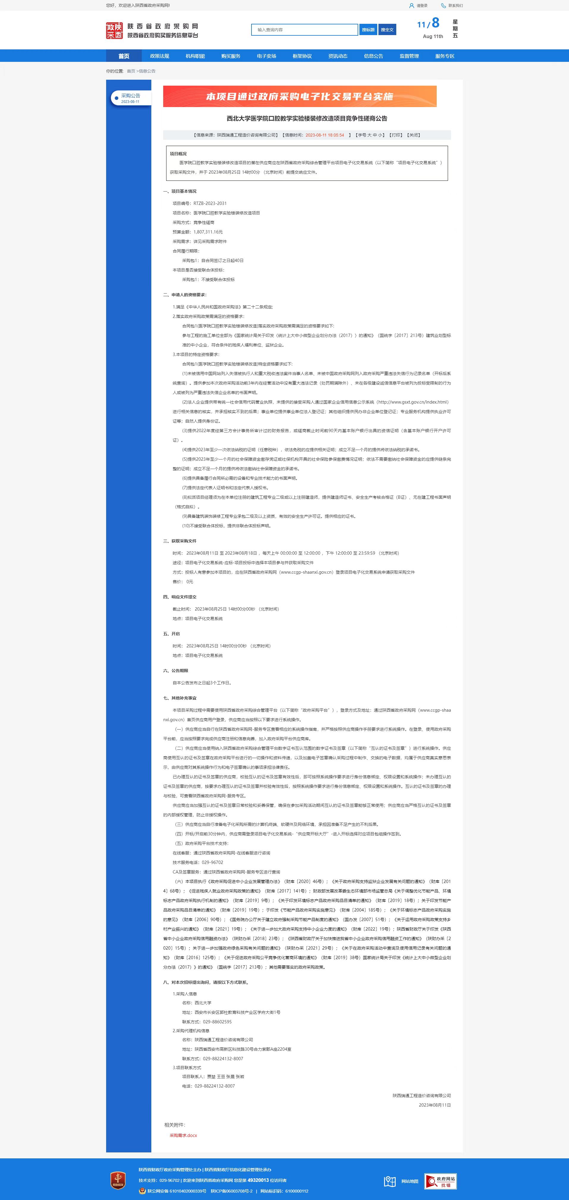必赢3003no1线路检测中心医学院口腔教学实验楼装修改造项目竞争性磋商公告