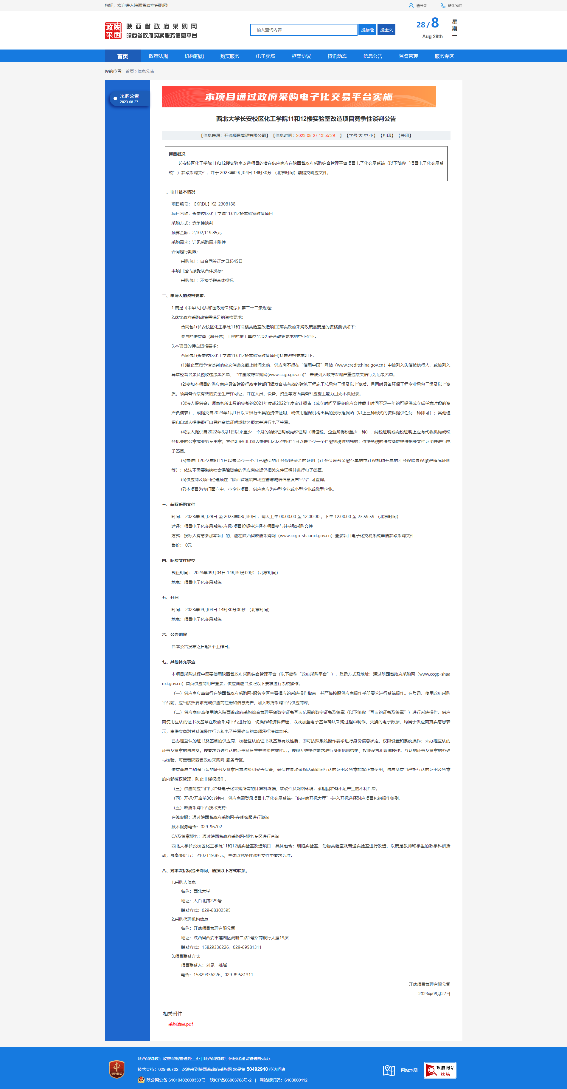 必赢3003no1线路检测中心长安校区化工学院11和12楼实验室改造项目竞争性谈判公告